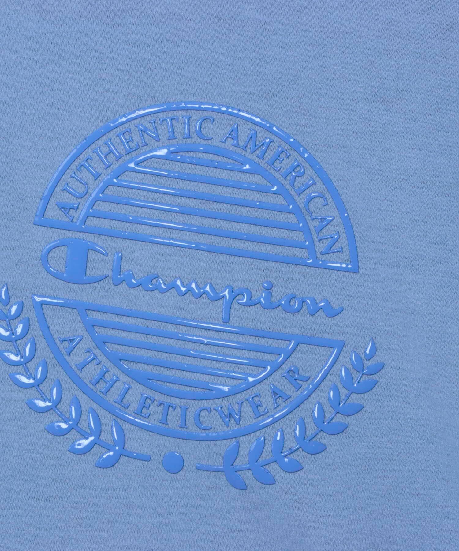 環境に配慮されたリサイクルポリエステル100%によるアクティブドライジャージーを使用したショートスリーブTシャツです。毛羽立ちやピリング(毛玉)の発生を軽減した表面感と、正円とは異なる形状の断面を持った異形断面糸による独特の肌触り、優れた吸水速乾性などもポイントです。身幅、肩幅、アームホールにゆとりを持たせたリラックスフィットで、襟はオーセンティック アメリカン アスレチックウェアのChampion(R)(チャンピオン)らしいバインダーネック仕様。胸には月桂樹や文字でChampion(R)ロゴを取り囲むエンブレム風シーズングラフィックを光沢感のあるジェルプリントで入れています。同素材を使用したラップショーツ(CK-BS511)、アクティブドライフレンチテリーを使用したスウェットパンツ(CK-BS203)も展開しているので、セットアップでの着用もオススメです。