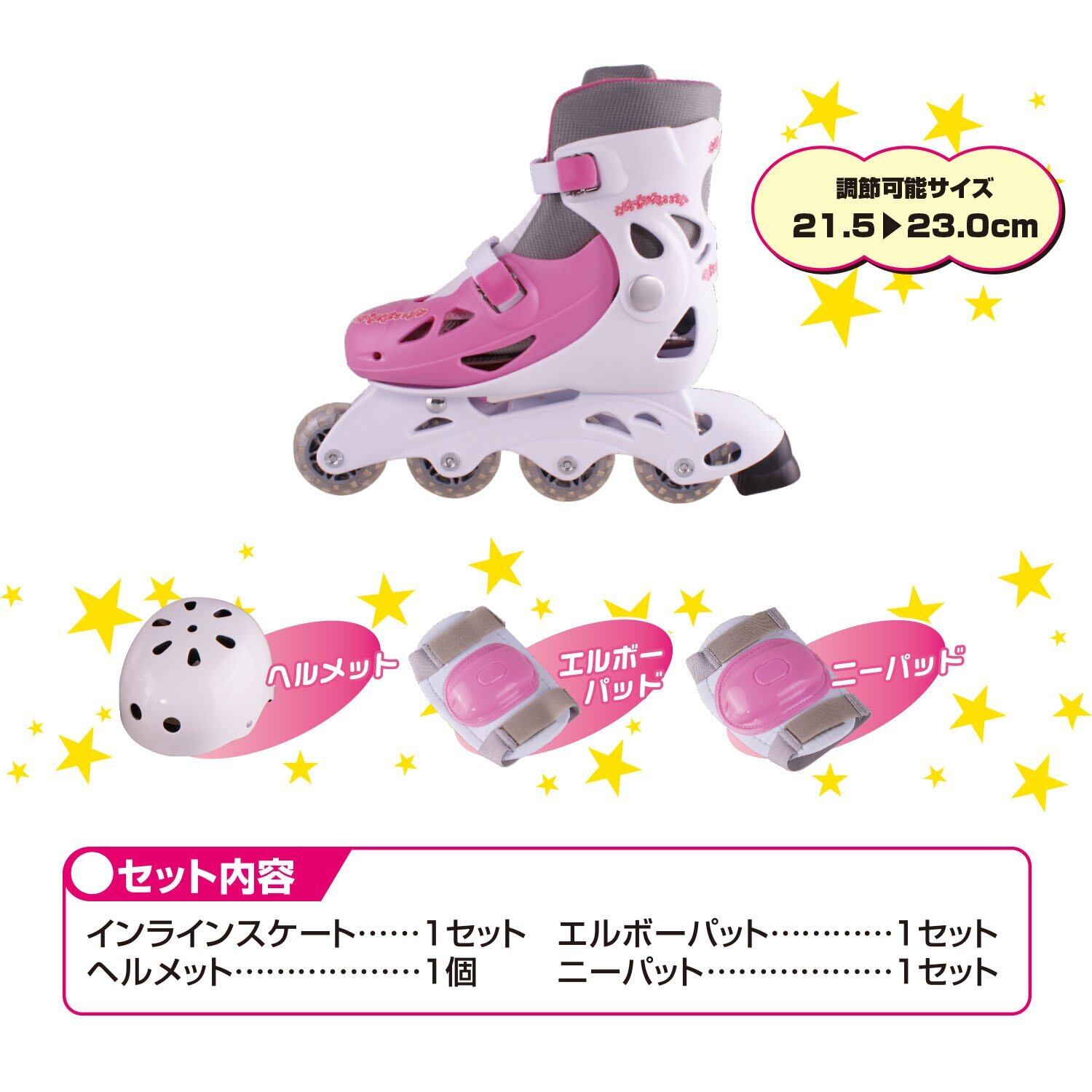 KAISER(カイザー) インライン スケート セット シェルブーツ タイプ KW-465 21.5~23cm 調節可 ローラー エルボーパット ニーパット ヘルメット