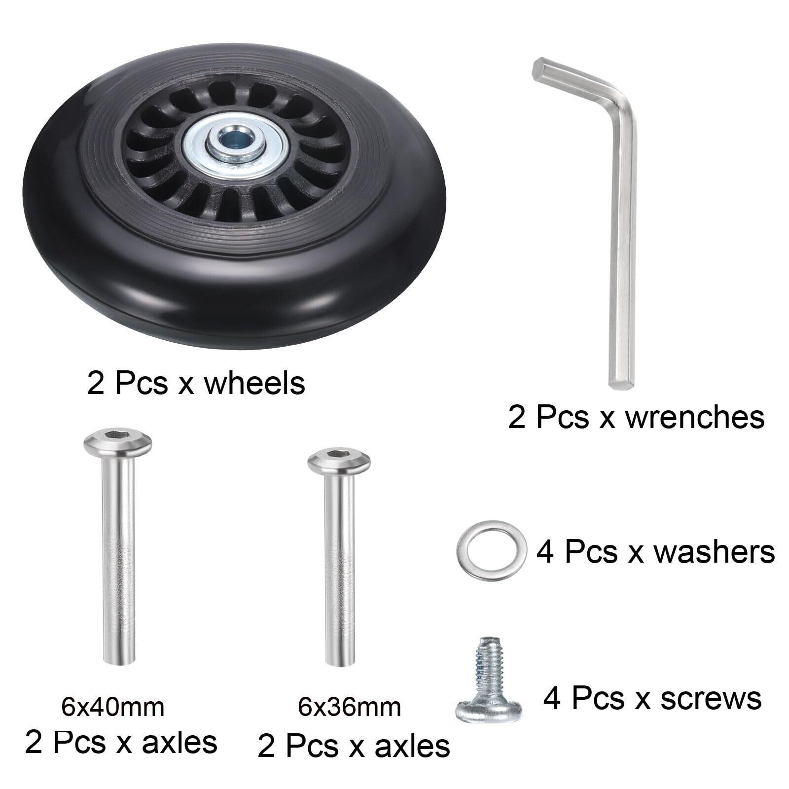 uxcell スーツケース用のラゲッジホイール交換キット 87 x 24 mm/3.4" x 0.9" ラバースイベルキャスターベアリングホイール修理キット インラインアウトドアスケート用 黒色 1セット