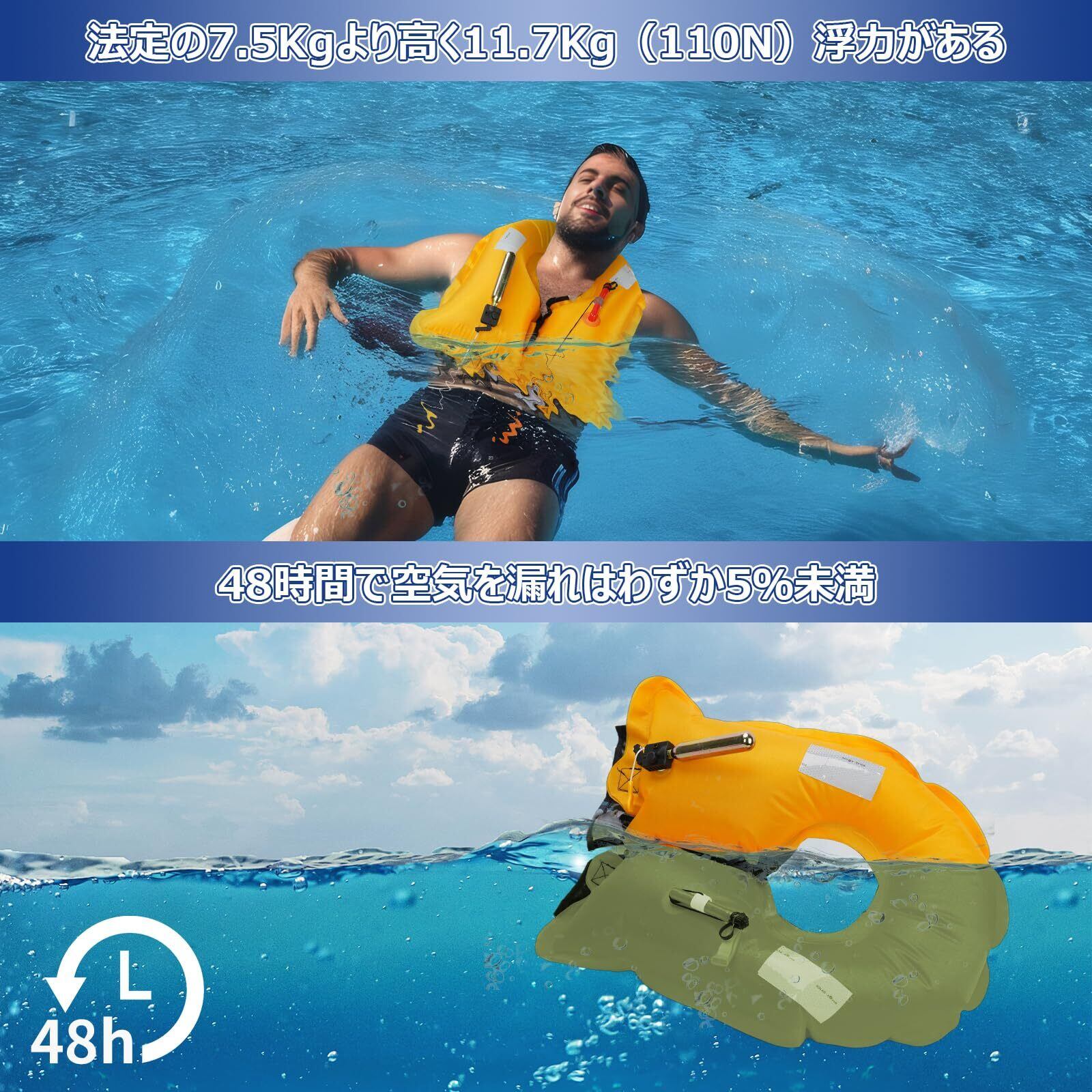 Owntop ライフジャケット手動膨張 D型救命胴衣 サイズ調節可能 救命胴衣 大人用 子供用 コンパクト 軽量 耐久性 防水 セーリング カヤック 水泳 ボート 釣り