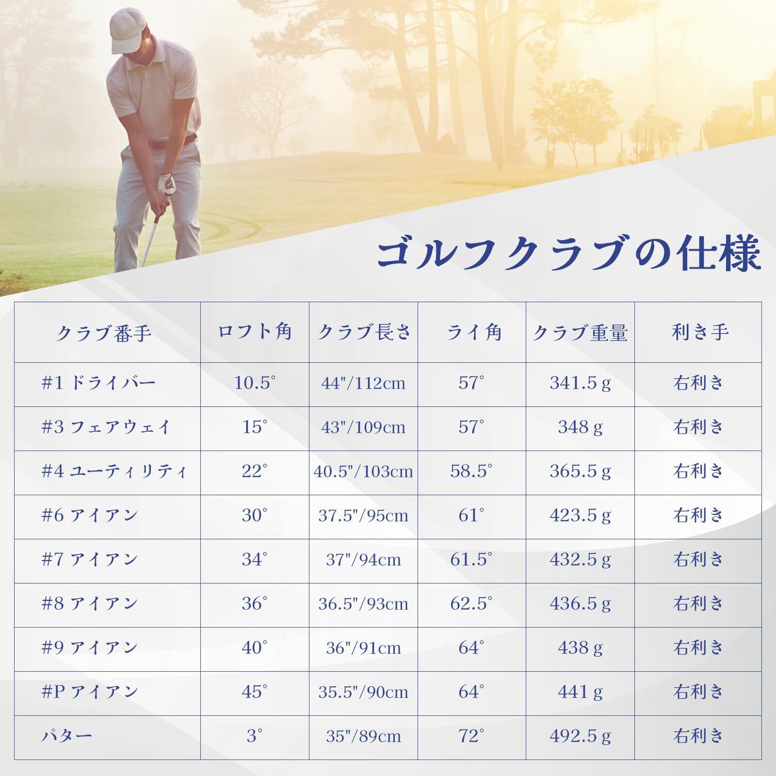 【ロフト角】●#1W:10.5度 ●#3W:15度 ●UT:22度 ●#6I:30度 ●#7I:34度 ●#8I:36度 ●#9I:40度 ●PW:45度 ●PT:3度