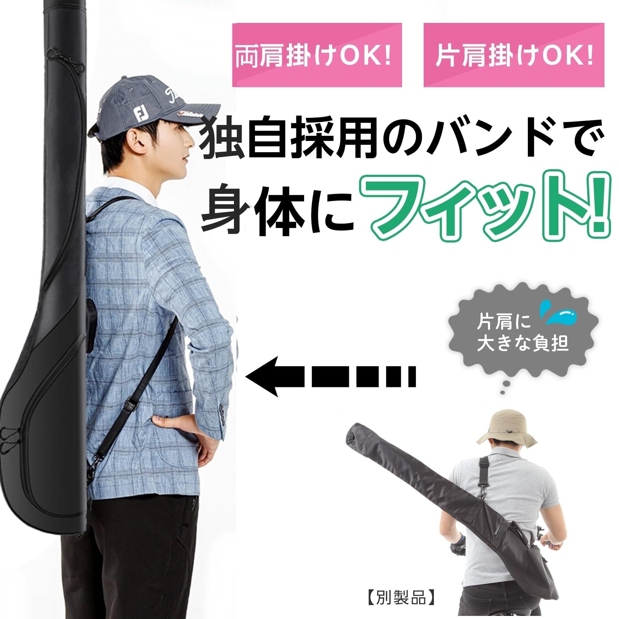 「両肩背負い」独自両肩背負いバンド採用! 伝統あるコースではカート使用が出来ない場所もあり、独自の、「両肩で背負える」 機能が便利! 疲労の分散が期待できます。