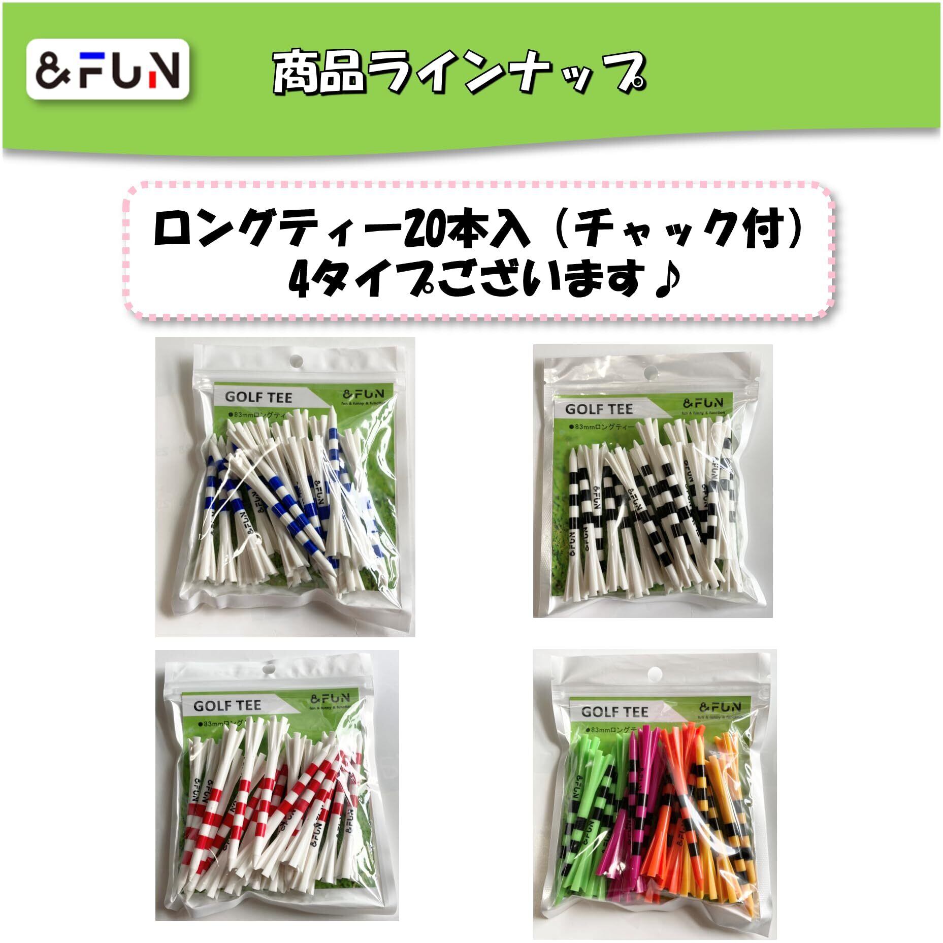 &FUN(アンドファン)ゴルフティー ロングティー 83mm 20本入 目盛り付 飛ばし屋 高さ調整簡単