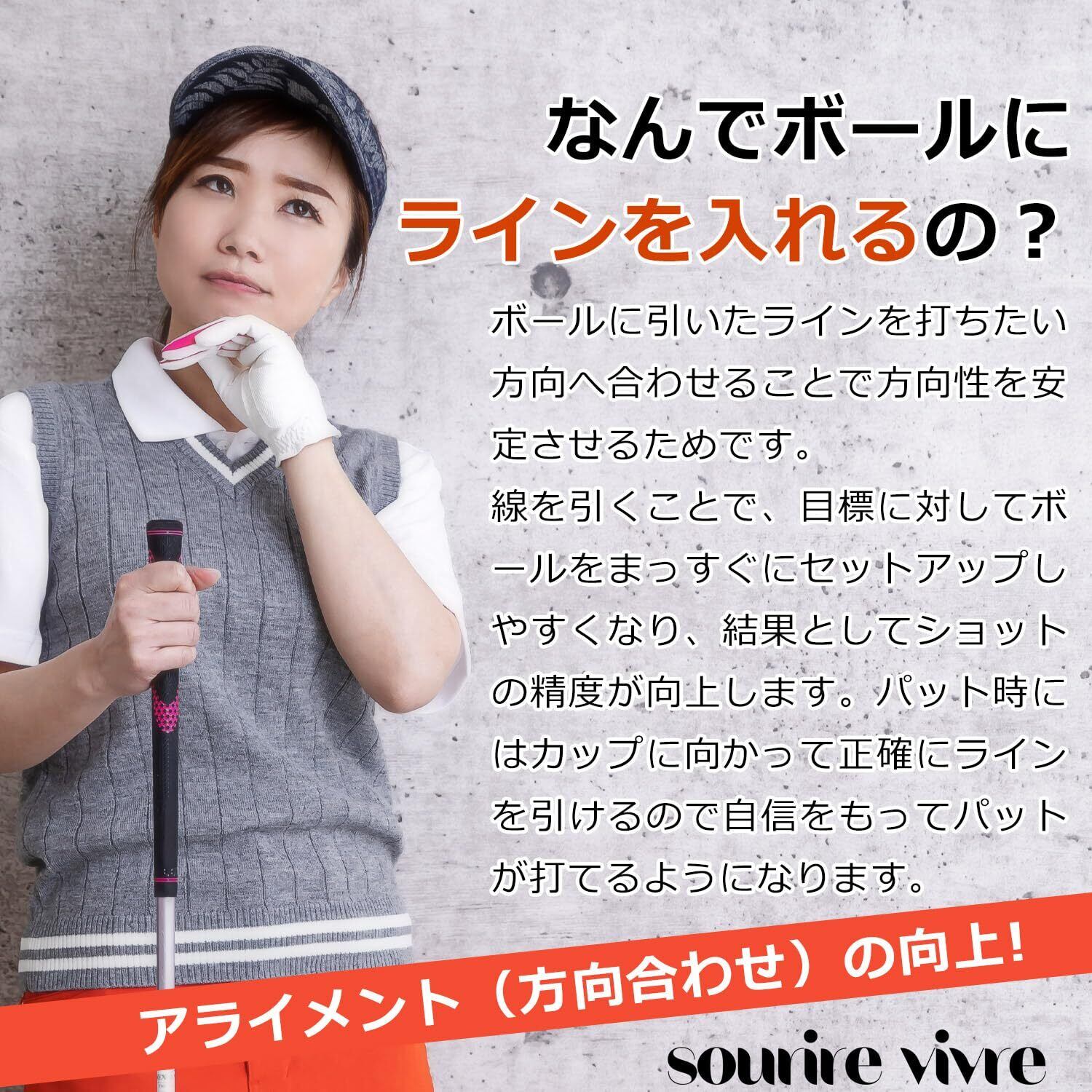 [sourire vivre] ゴルフボールマーカー ペン3色付き クルっと回して360°簡単ライン引き 180°でも使える ラインマーカー 線引き トリプルライン