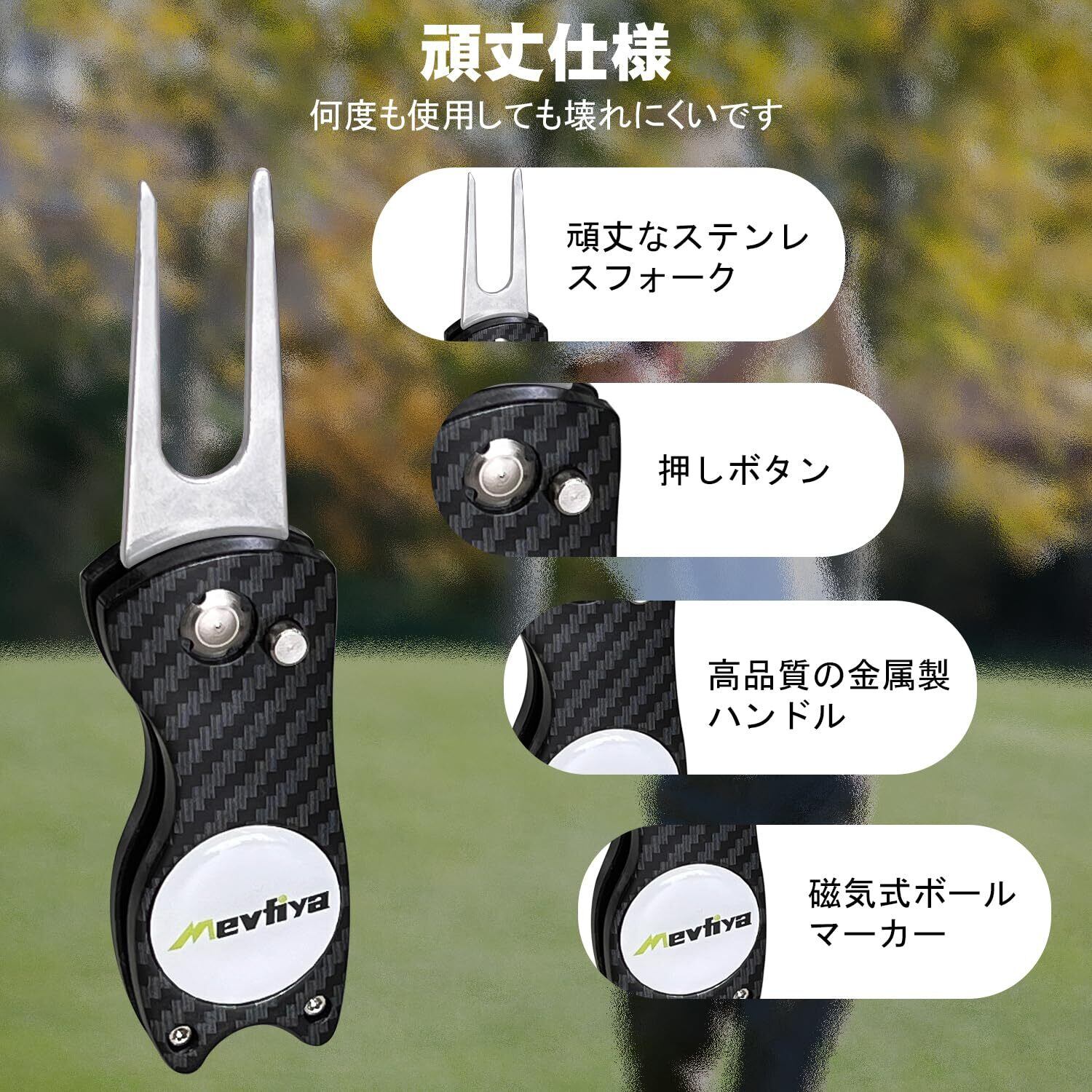 【耐久性と携帯性 – すべてのゴルファーに理想的】 ステンレス製フォークとソリッドアルミ合金製のハンドルにより、優れた耐久性を実現。軽量かつコンパクトで、ポケットやキャディバッグに簡単収納。旅行先や普段使いに最適な折りたたみ式ゴルフ用品として、あなたのゴルフライフをサポートします。