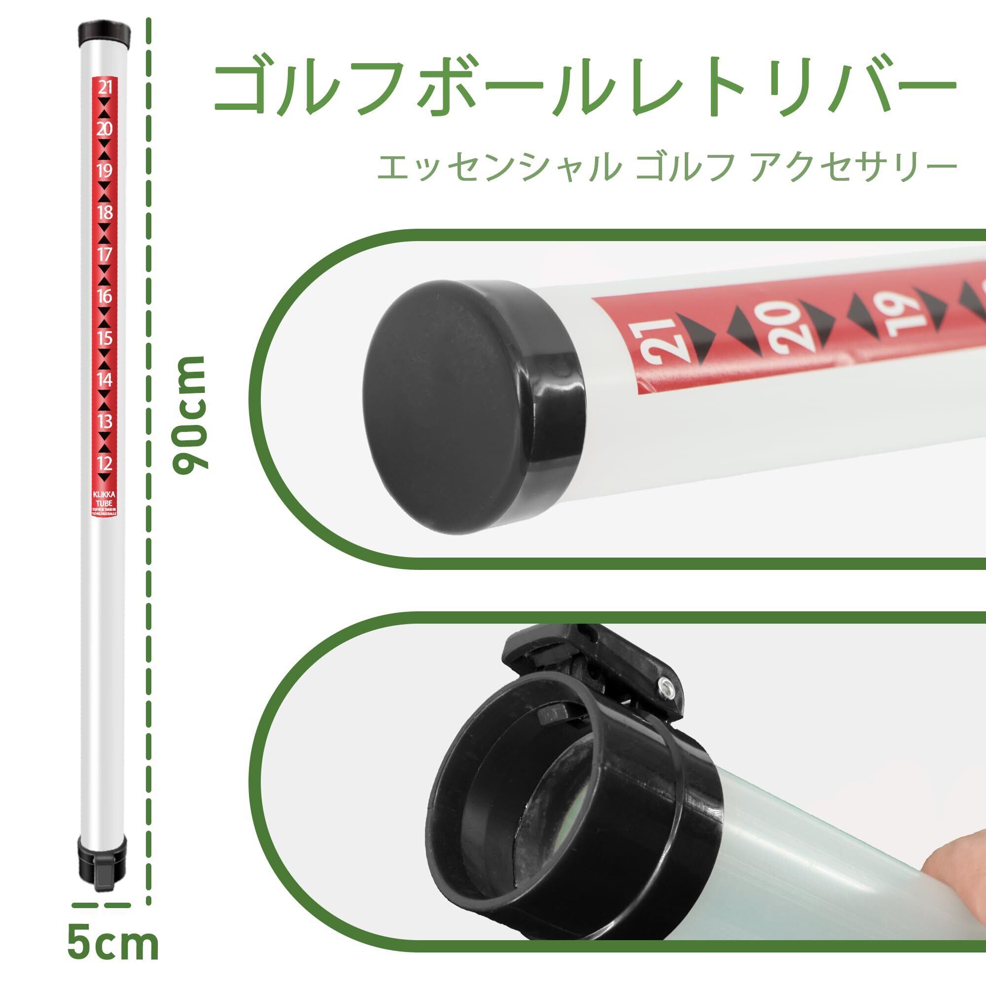 【大容量】- このレトリバーは最大21のゴルフボールを保管でき、チューブには数量を見る数があります。 ゴルフボールのみを拾うことができることに注意してください。