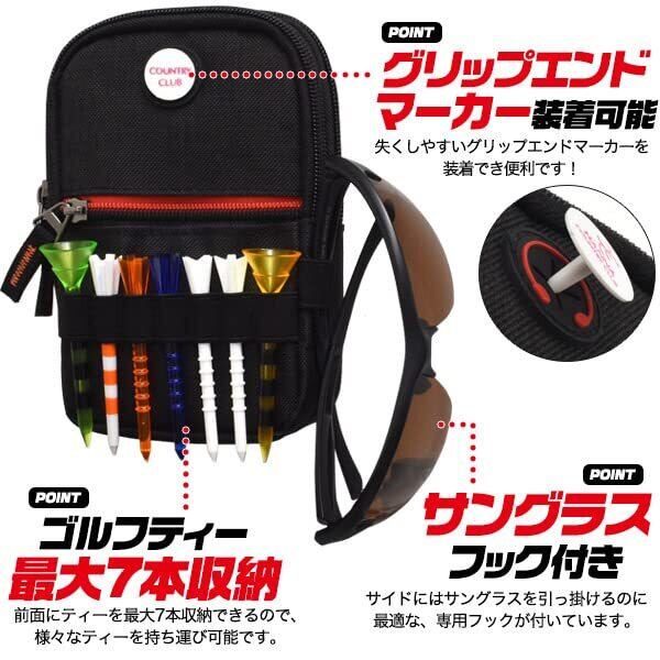 ゴルフベルトポーチ ラウンドポーチ ゴルフ用品 収納 コンパクト ショルダーベルト カラビナ 付き (ブラック)