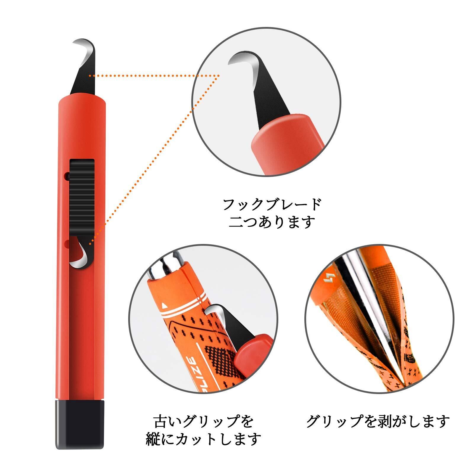 ✂️【グリップカッター】両端も利用でき、フックの形状の鋭いグリップカッターです。バナナを切るように古いグリップを切れます。