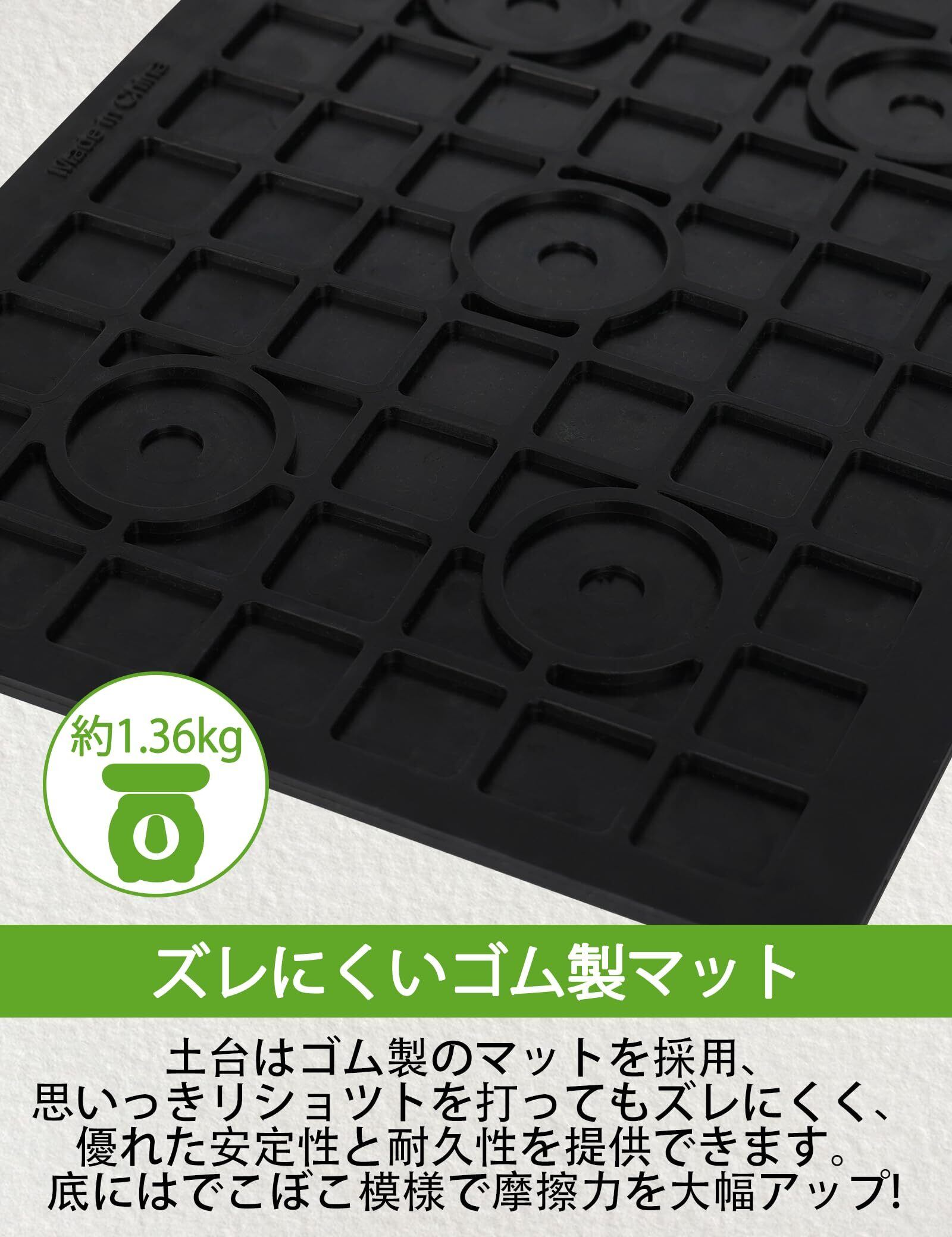 【ズレにくいゴム製土台マット】思いっきりショットを打ってもずれないようにゴム製マットを使用し、優れた安定性と耐久性を提供できます。ゴルフマットの底はでこぼこ模様で摩擦力を大幅アップ!良好なグリップ感を提供し、スイングした時にずれたりしにくいので、安心して練習することができます。