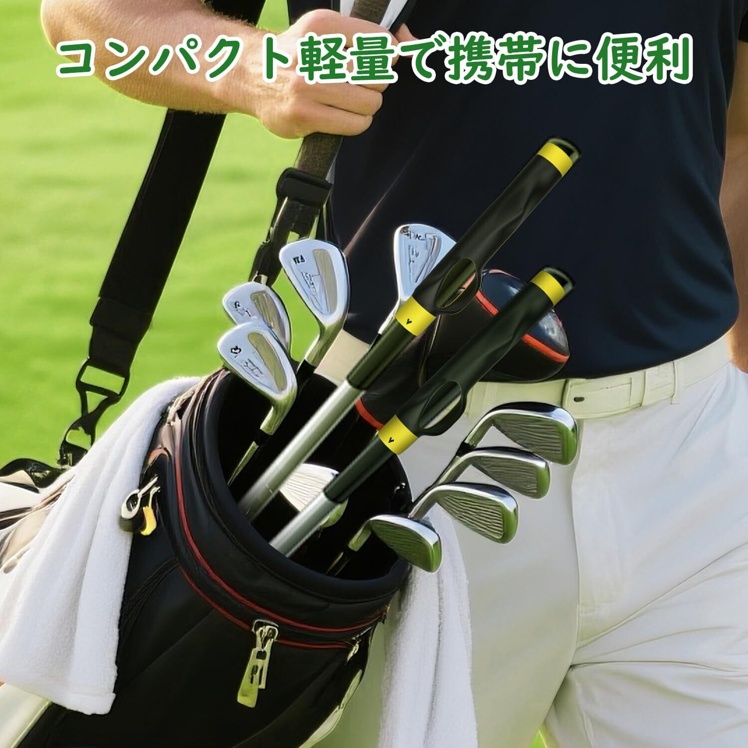 「軽量で携帯に便利」コンパクトでわずか数十グラムの超軽量設計ながら、専用ケースなども不要で、通常のゴルフバッグのポケットにすっきり収納可能で邪魔になりません。面倒な取り付け作業も不要で、数秒でクラブに装着可能です。ちょっとした空き時間を活用して、手軽にスキルアップを図れます。