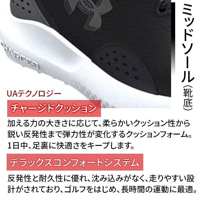 ●ミッドソール(靴底)は一日中快適に過ごせるUNDER ARMOURのテクノロジー:チャージドクッション仕様で足裏に快適さをキープ。