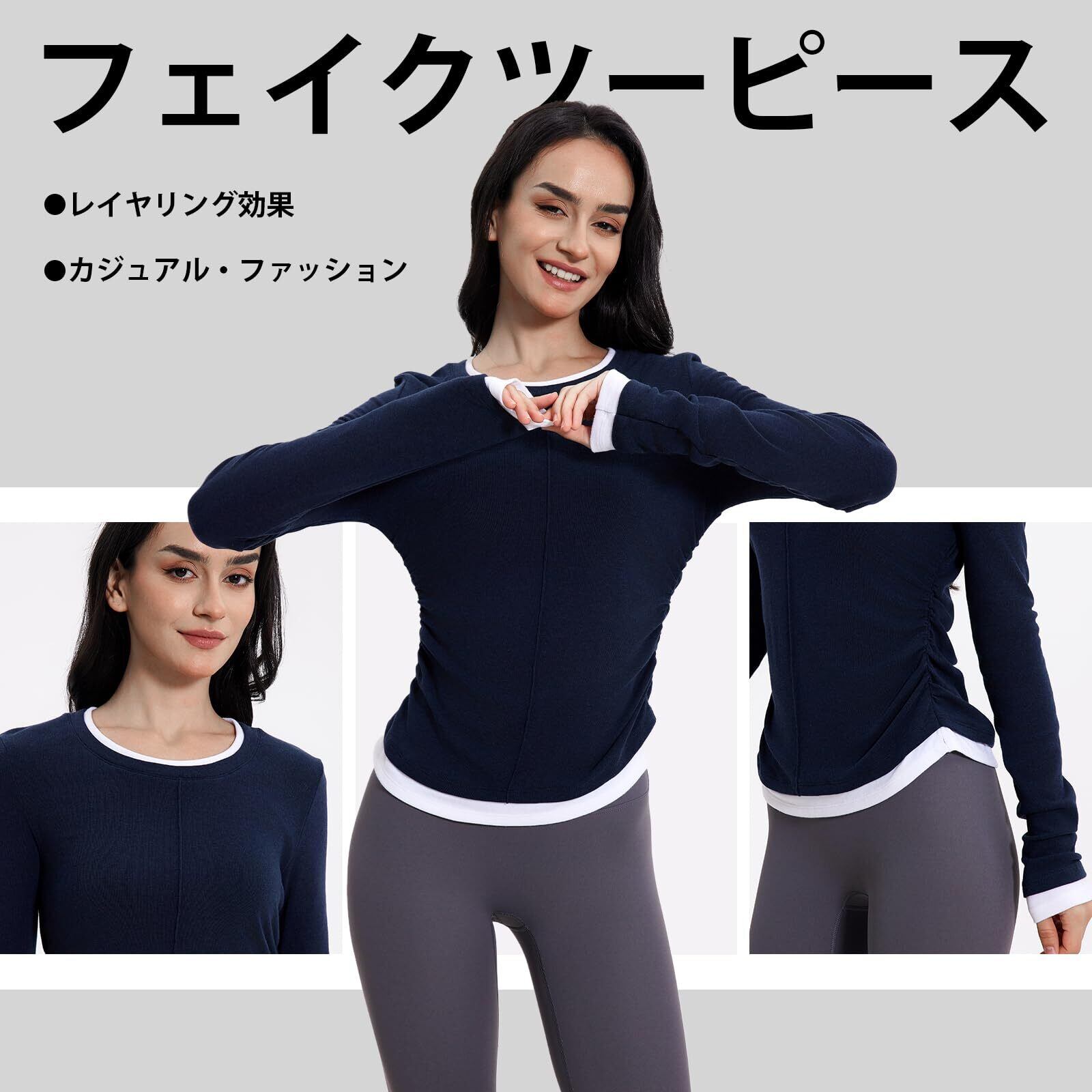 [IRCOLVE] ヨガウェア スポーツウェア レディース 長袖 ピラティス ウェア トレーニングウェア レディース ランニングウェア 冬 レディース ラウンドネック スリムフィットトップス 速乾性