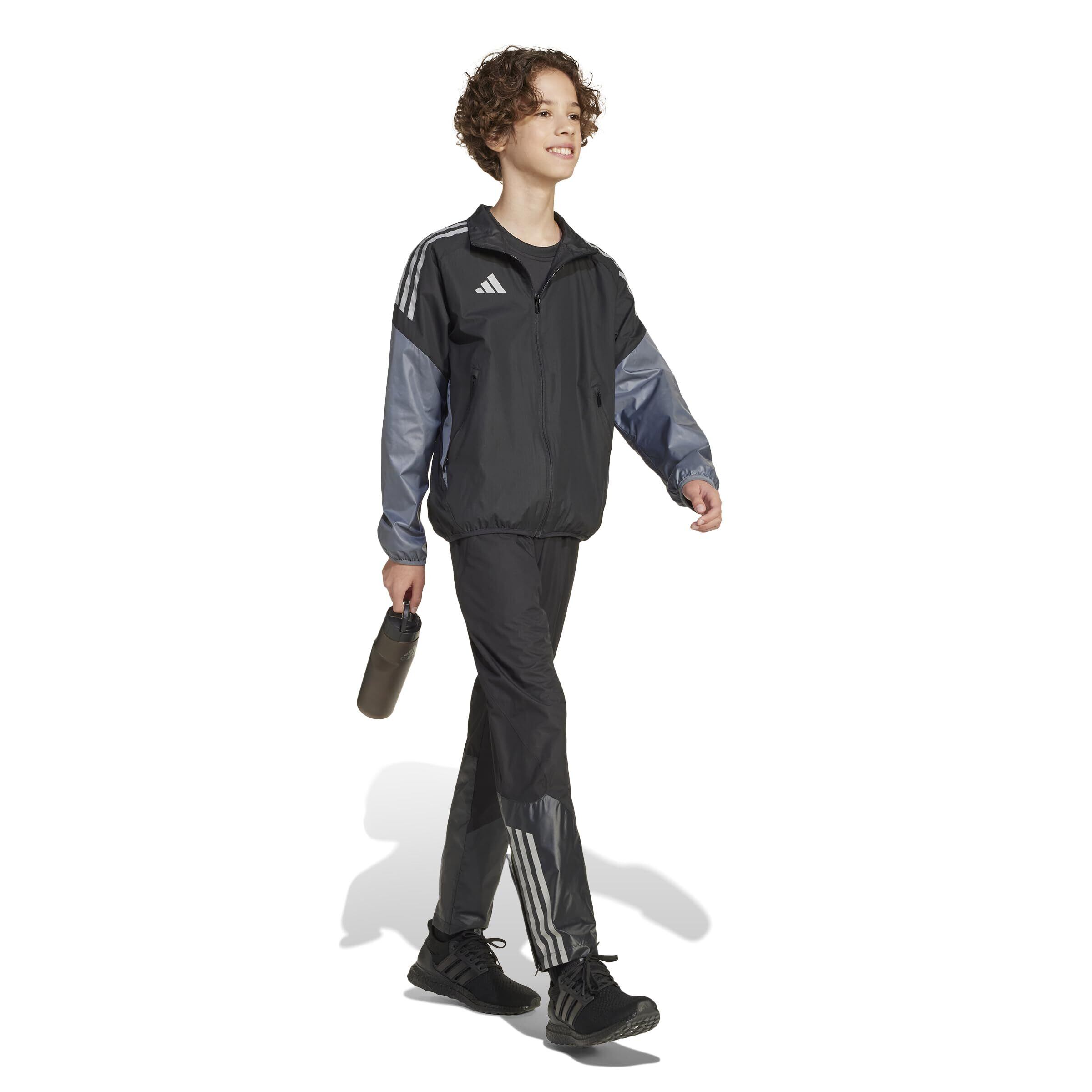 準備万端でピッチに足を踏み入れよう。このジュニア用ウインドジャケットは、アイコニックなティロシリーズからインスピレーションを得たデザイン。素材に軽量リップストップ生地を採用した、全天候型の仕様になっている。冷たい外気が中に入ってこないように伸縮性のある袖口とスタンドカラーを備え、小物をしまっておける便利なジップポケットをあしらっている。視認性を高めるリフレクタープリントのスリーストライプスと3バーロゴが、スキルをも際立たせる仕上がりに。この製品にはリサイクル素材を100%使用。製品に用いられた素材をリユースすることで、廃棄物の量、限りある資源への依存、そしてアディダス製品のフットプリントを減らすことに役立てている。