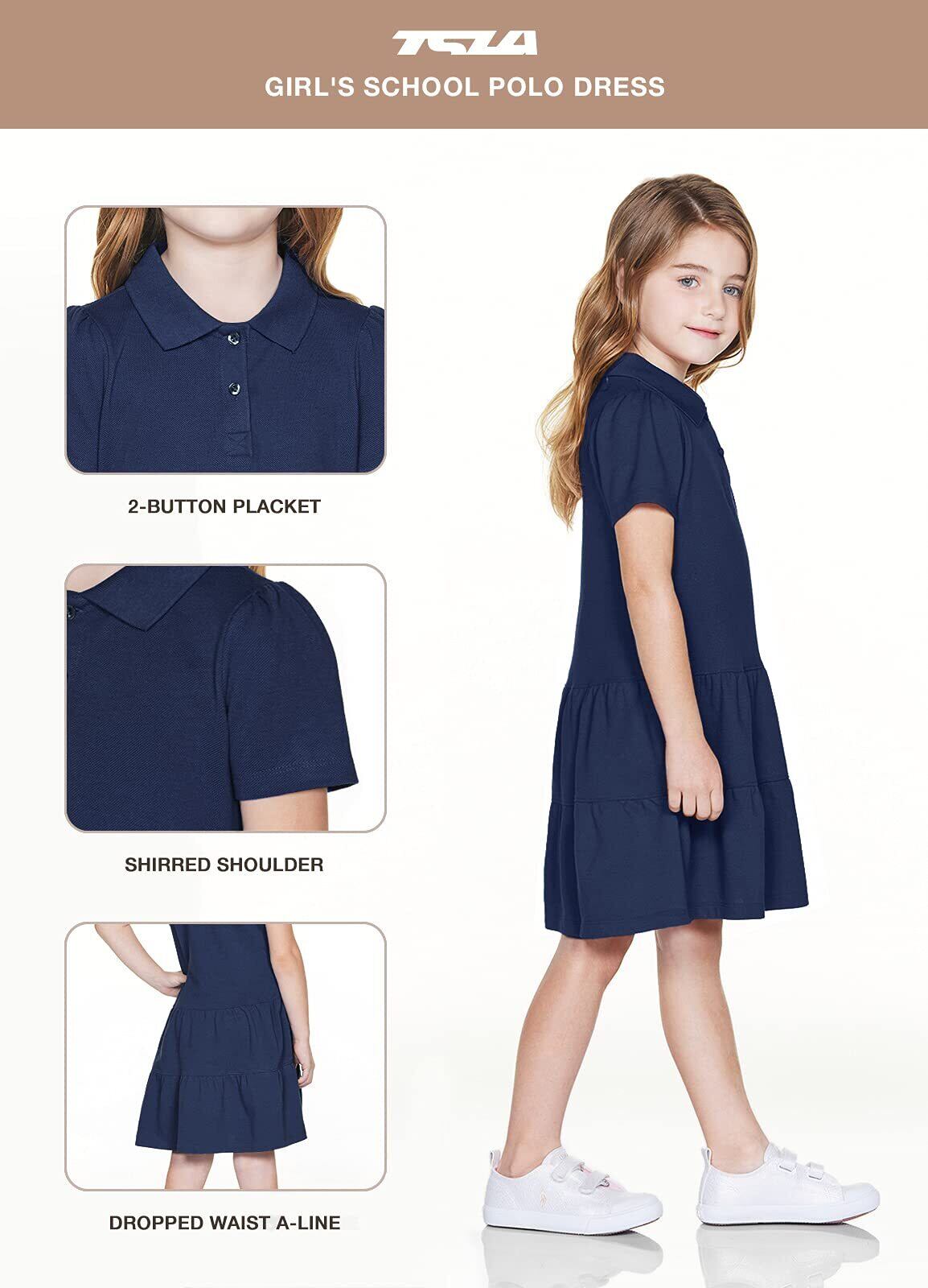 [テスラ] ワンピース 半袖 キッズ [軽量・通気性・速乾] ポロワンピース 鹿の子 アクティブ フォーマル カジュアル 無地 通学 子供服 女の子 ガールズ ジュニア