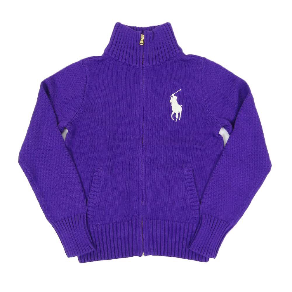 ポロラルフローレン(POLO Ralph Lauren)のガールズサイズ、コットンニットジャケット。ビッグポニーの刺繍入りのコットンニット。金色のフルジップ、ポケット付き。生産国/ MADE IN CHINA 素材/ 100% COTTON EXCLUSIVE OF DECORATION