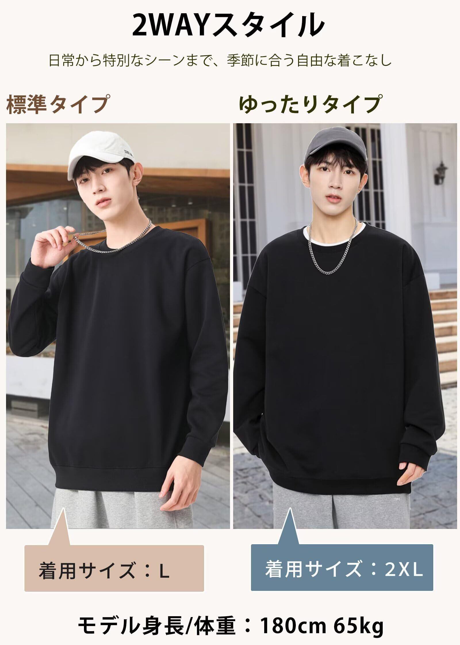 [uptoyou] トレーナー メンズ レディース スウェット クルーネック 長袖 11.3オンス 冬 ゆったり 大きいサイズ 男女兼用 無地 カジュアル トップス 丸襟 プルオーバー インナー アウター ルームウェア 通勤通学 S-5XL 春 秋