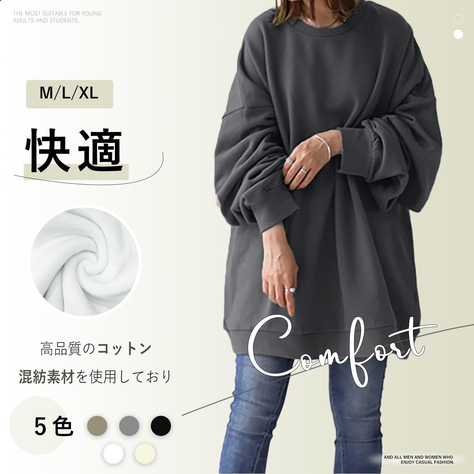 【肌に優しいトレーナー】高品質のコットン混紡素材を使用しており、柔らかく肌に優しい触感を実現しています!!肌に優しいこの素材は、通気性にも優れているため、長時間の着用でも快適さを保ちます。そして、裏起毛と裏起毛なしの2種類から選べるため、季節に応じて最適な着心地を楽しむことができます。寒い秋冬には暖かい裏起毛タイプを、春秋の温暖な気候には軽やかな裏起毛なしタイプをおすすめします。