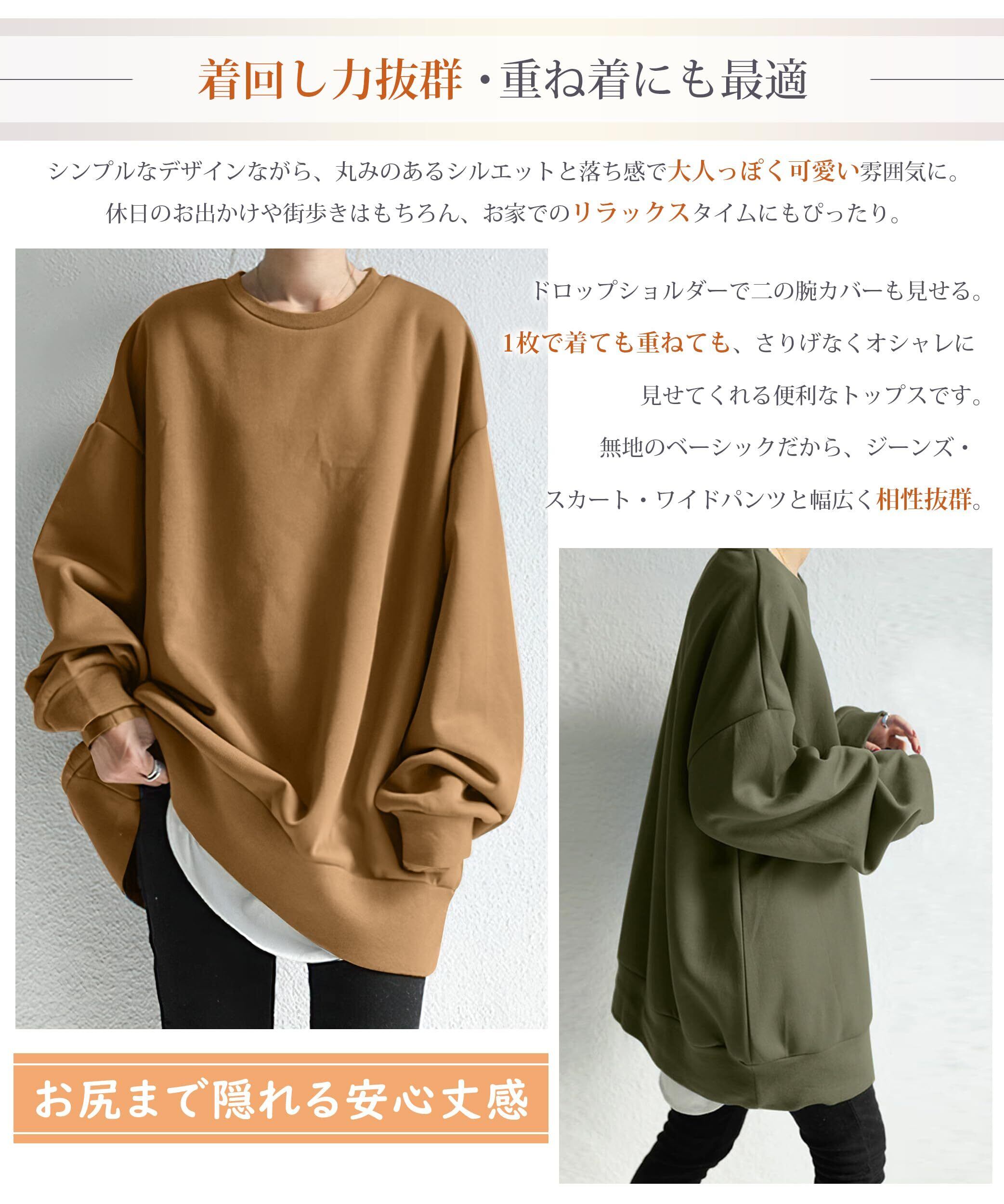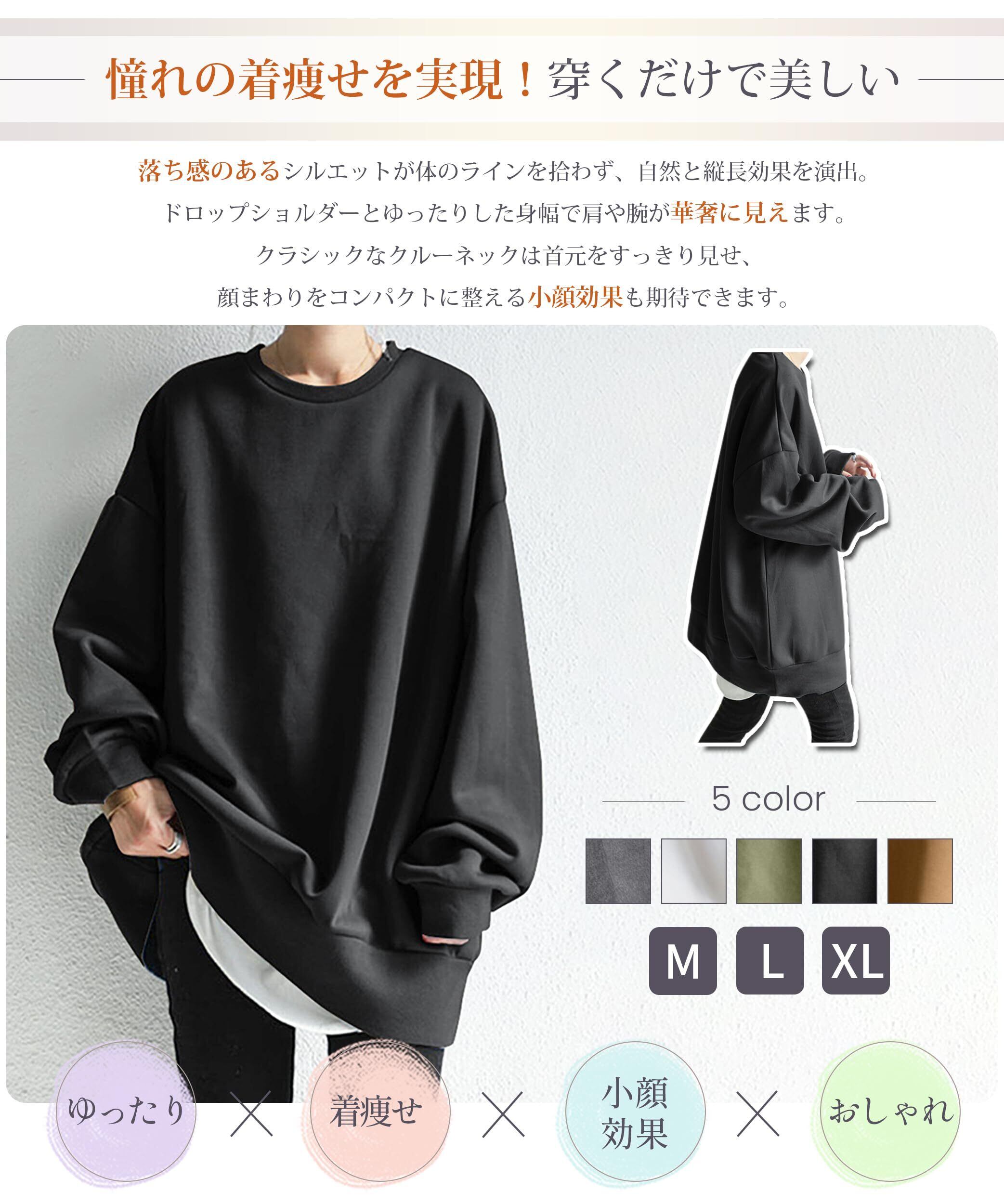 [Luxiwear] トレーナー レディース 長袖 【憧れの着痩せを実現!ゆったりx重ね着】 スウェット クルーネック オーバーサイズ 体型カバー 大きいサイズ 着痩せ 柔らかい プルオーバー ビッグシルエット 無地 着回し シンプル おしゃれ カジュアル