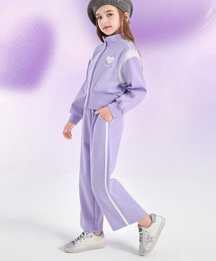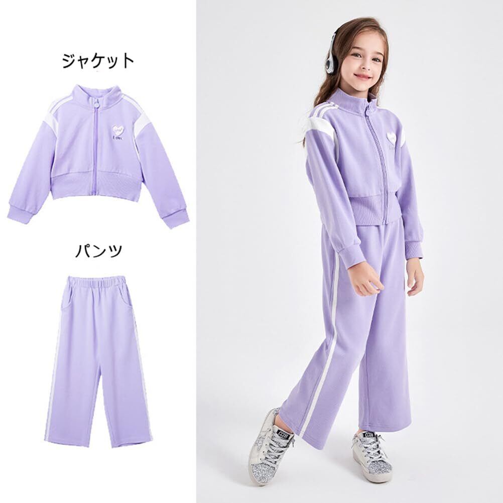 [NOMSOCR] 女の子 ジャージ 上下セット 子供服 ジッパーパーカー ワイドパンツ 2点セット ガールズ スウェット 長袖 スポーツウェア 120cm~170cm