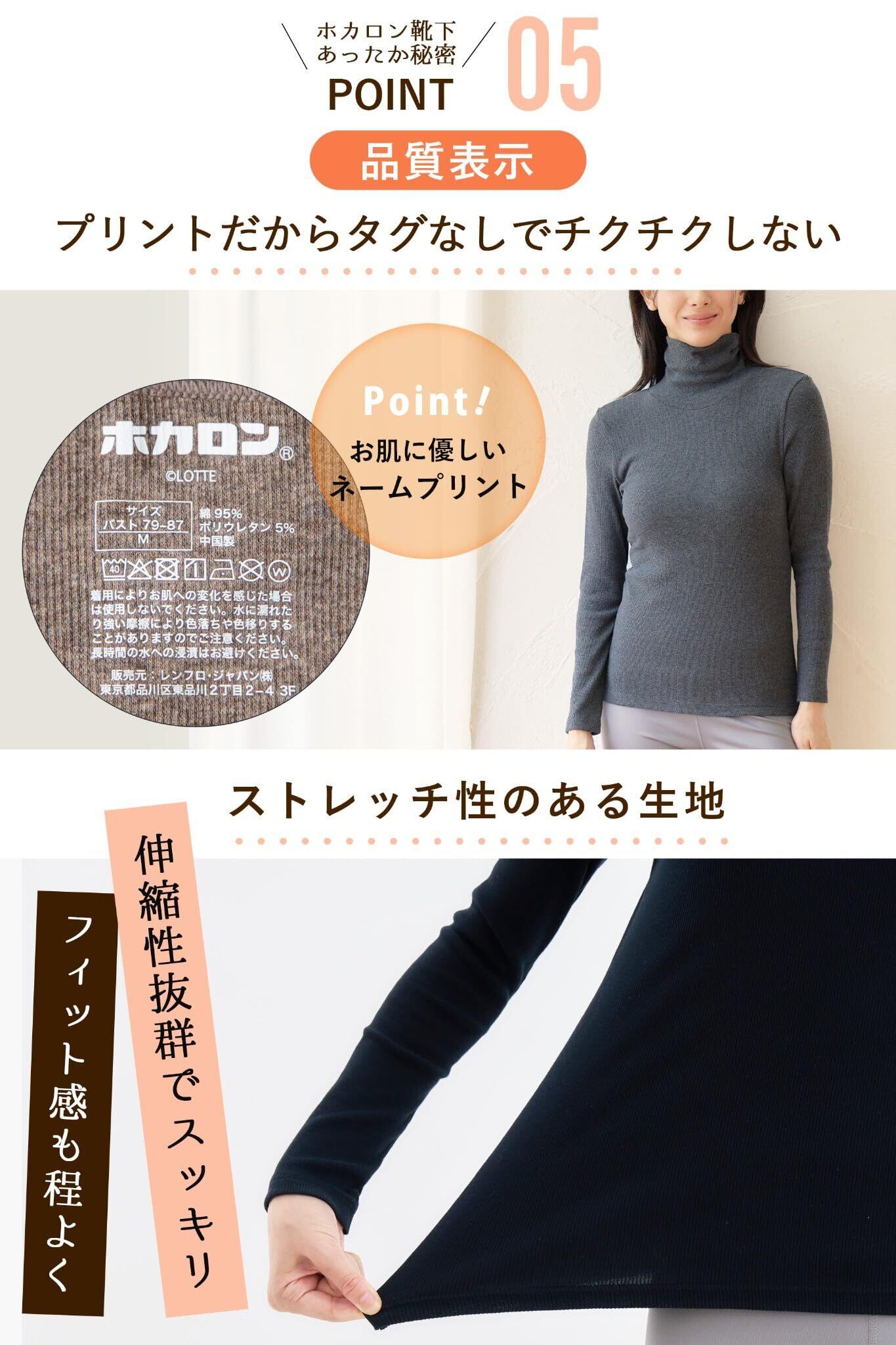 [ホカロン] あったかインナー レディース リブ タートルネック 長袖 綿混 1枚