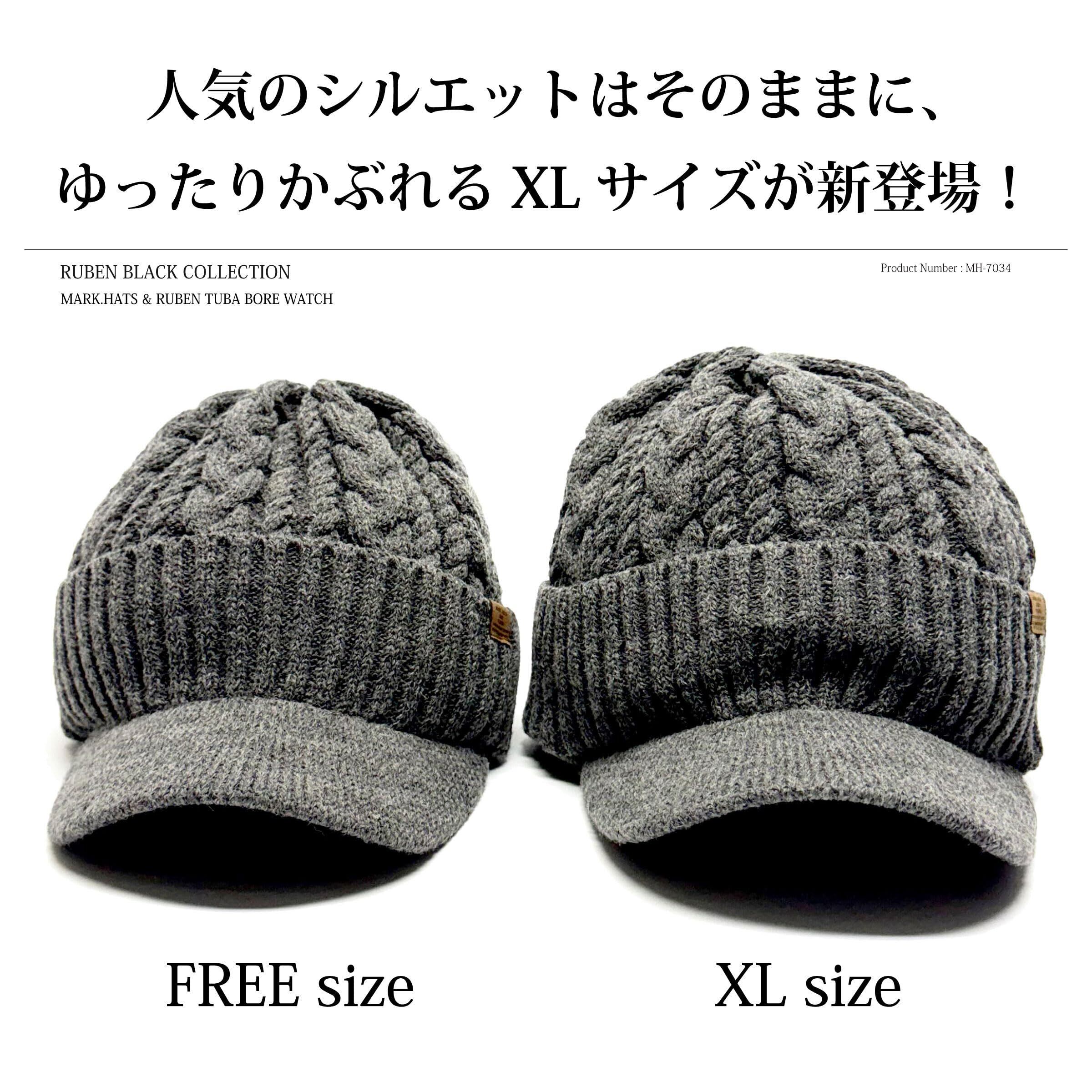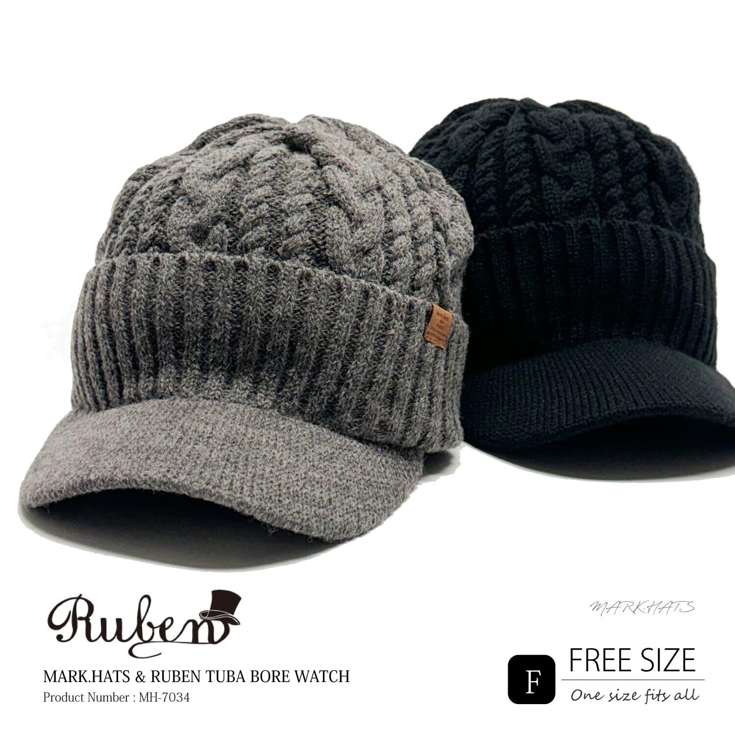 [ルーベン] 大きいサイズも選べる MARK.HATS 別注企画 柔らか裏ボア 暖かい ウール混 つば付き ニットキャップ ケーブルボアワッチ TUBA BORE WATCH