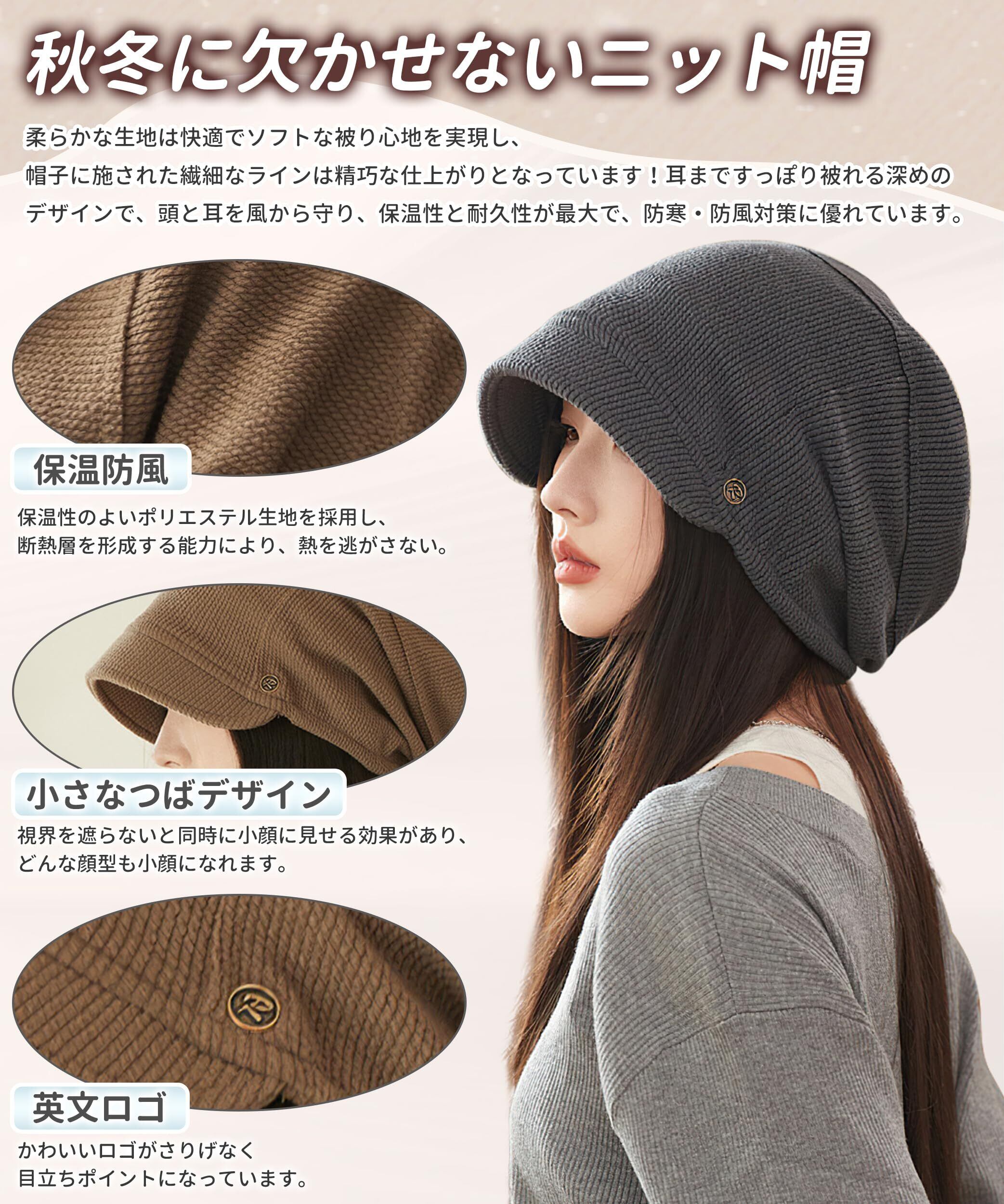 [SIVAN] 【顔が小さく見える】ニット帽 レディース 秋冬 【定番なつば付きニット帽・柔らかさの2層仕立て】 暖かい 防寒防風 抗菌防臭 保温 大きいサイズ ストレッチ性 帽子 ニット帽子 ニットキャップ 無地 サイズ調整可能