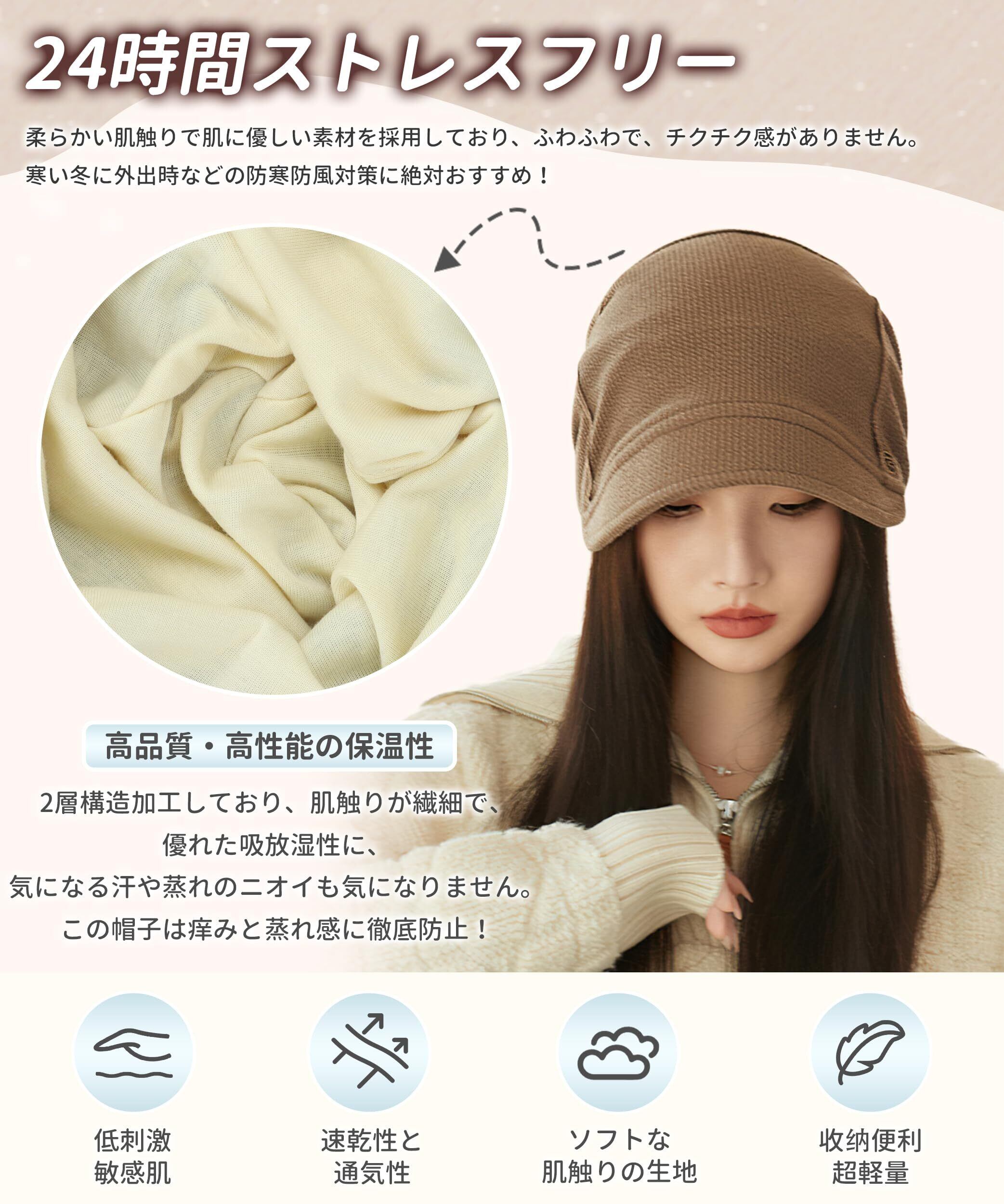 【高品質・高性能の保温性】帽子の外側は、保温性と耐久性を最大限に高め、優れた保温性を発揮する高品質のストレッチニット素材で縫製されています。帽子の内側にはコットンを使用し、柔らかな素材が頭を優しく包み込み、軽量でストレスのない被り心地を実現。 キャップは高性能な二重構造の断熱材を使用しているため、熱を吸収しやすく外気を遮断することで、38°Cの一定温度を一定に保つ。 帽子は直接肌に触れるものなので、当社の帽子はとても贅沢で高品質なニット素材を使用しています。 敏感肌の方にもおすすめです。また、耳当て部分を低くして耳を包み込むように設計されており、しっかりと防寒することができます。ファッション感と保温性を両立した秋冬の時期に欠かせないお出かけ用品です。