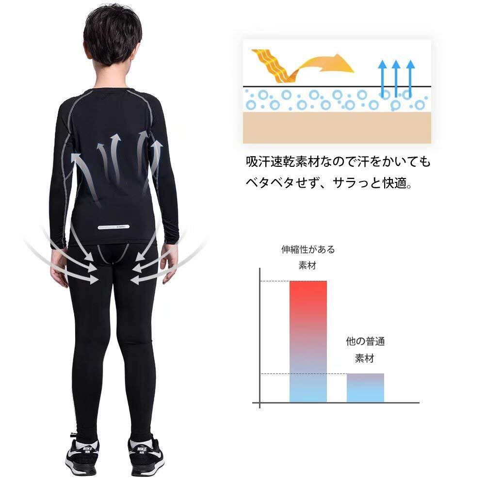 [Barifall] スポーツ インナー キッズ 上下セット コンプレッションウェア パワーストレッチ 長袖 スポーツ タイツ UVカット吸汗速乾 スキーウェア 子供用