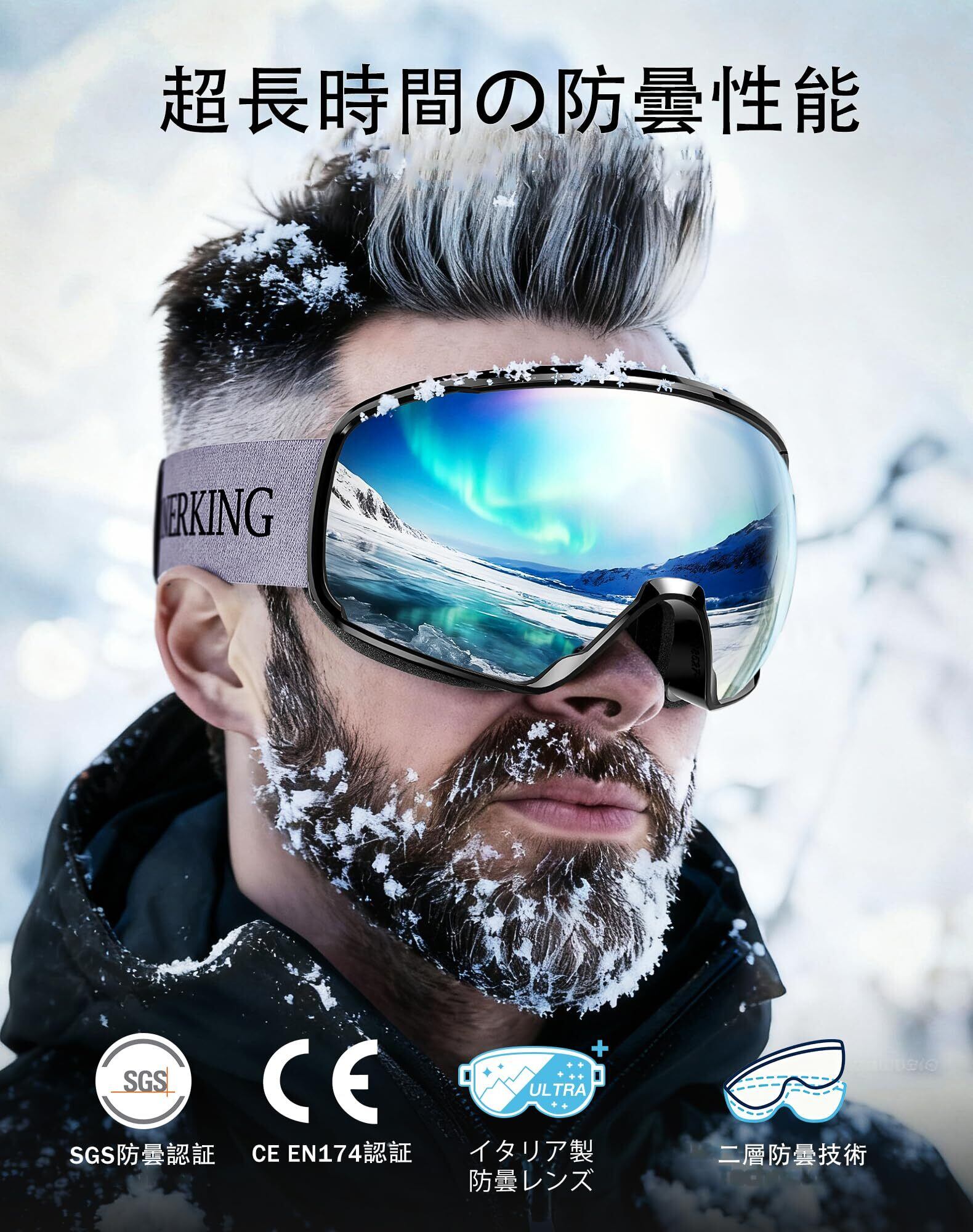 InnerKing スキーゴーグル【2025冬新モデル】 防曇 メガネ対応 ダブルレンズ 広視野平面 ヘルメット対応 防紫外線・耐衝撃性・耐熱性・難燃性に 曇り止め スキー ゴーグル メンズ レディースに適用スノースポーツ用ゴーグル サイズ調整可 男女兼用 スノボ ゴーグル 防風 防雪 全天候対応