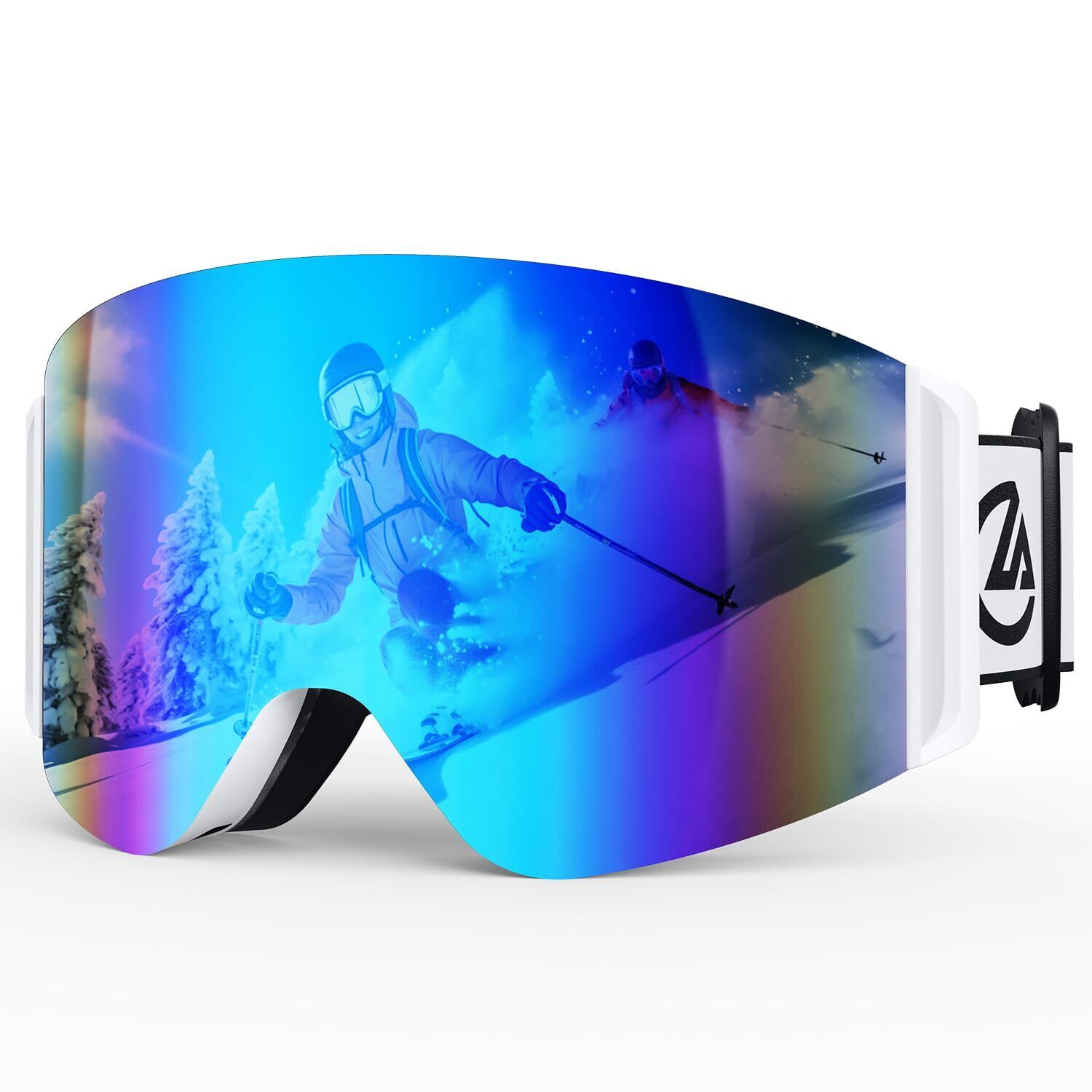[NamiPro] スキーゴーグル メンズ 【フレームレス広視界&レンズ着脱OK&偏光レンズ】 スノボ ゴーグル メガネ対応 ミラーレンズ 曇り止め UV400 紫外線防止 通気性 ヘルメット対応 滑り止めベルト 三層スポンジ 抗衝撃 通気設計 軽量 スノーボード ゴーグル ジュニア 男女兼用 防風 防雪 全天候対応 レンズ取れるタイプ ski goggles (白枠・ブルー)
