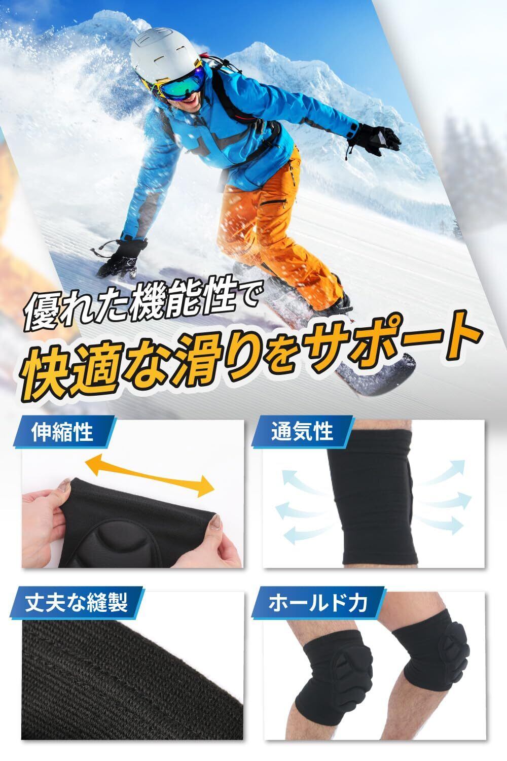 【ホールド力】マジックテープではなく、膝全体をカバーするサポーターにより、プロテクターが滑走中にズレたりしないよう確りサポート。