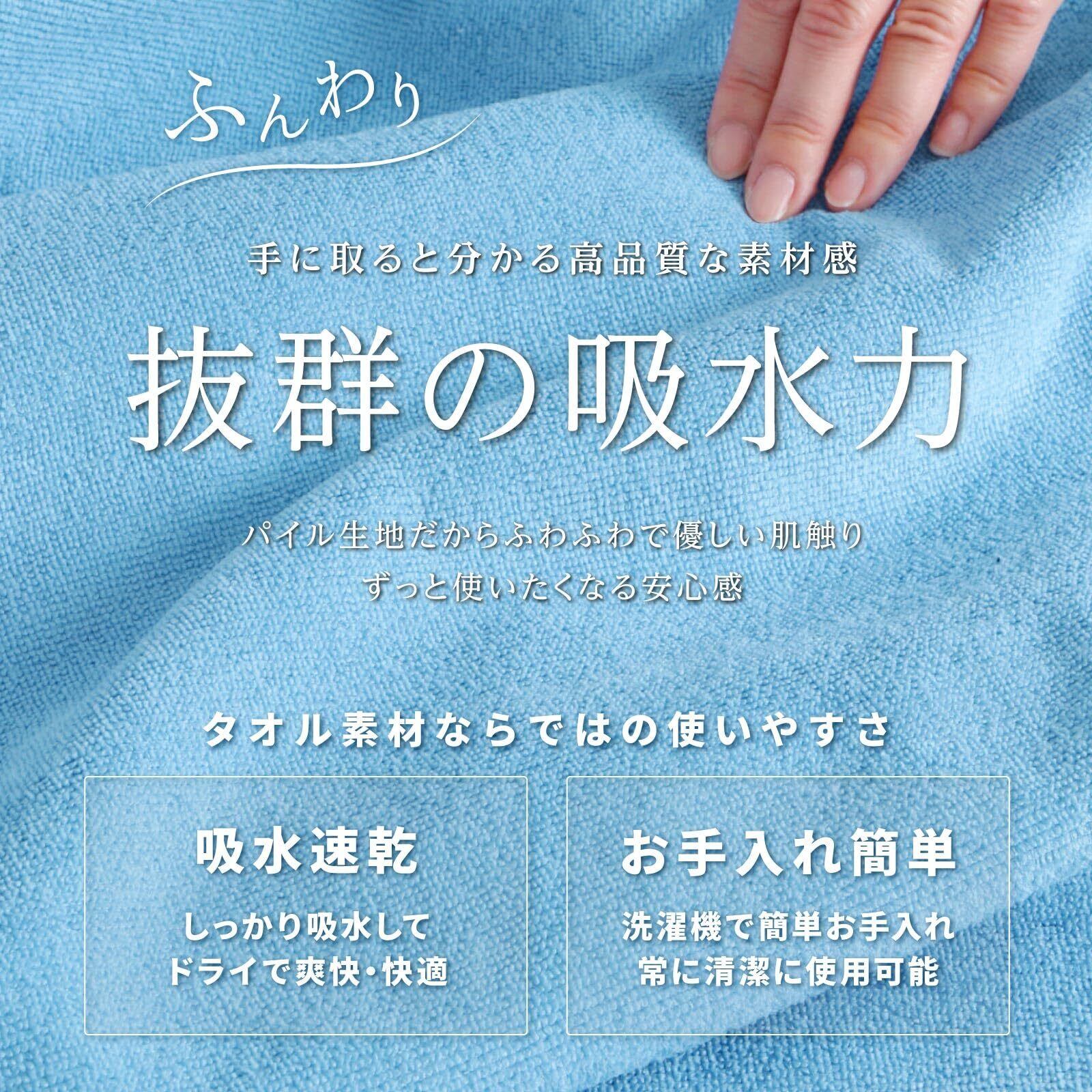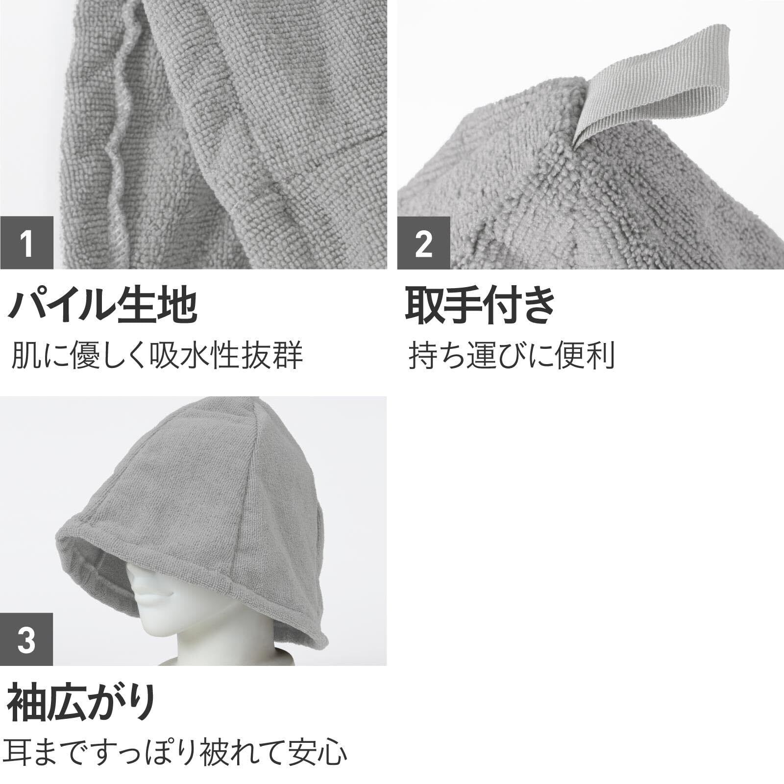タオル素材で優しく頭を包み込み、肌触り抜群。吸水性もよく、洗濯機で丸洗い可能。
