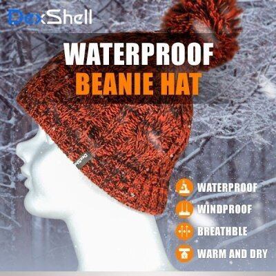 DexShell 防水通気ニット帽 オレンジ黒ポンポン 防水 ムレない 伸縮素材 防水ビーニーハット 帽子 DH342-TR