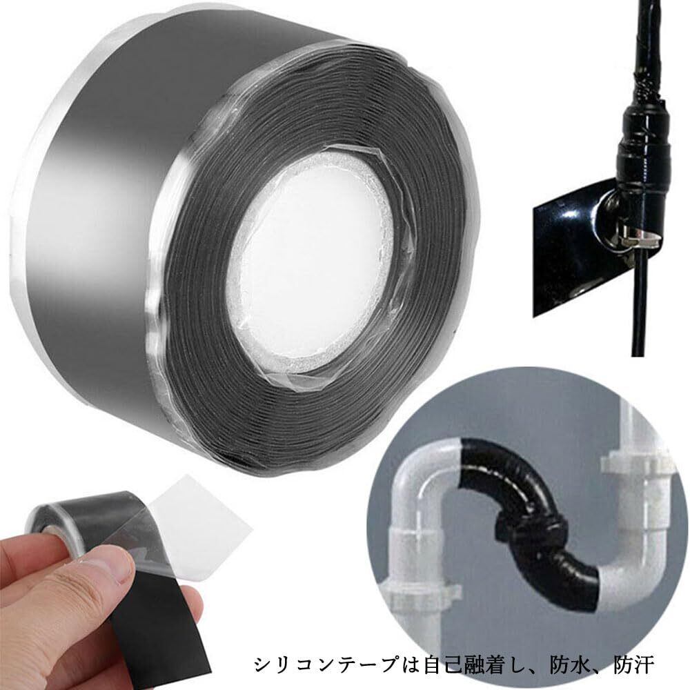 シリコングリップテープ ハンドル用 ゴムテープ 懸垂バー バーベル ダンベル スポーツ ジム 機器 ツール セルフフュージング ジム設備 ブラック 2ロール [並行輸入品]