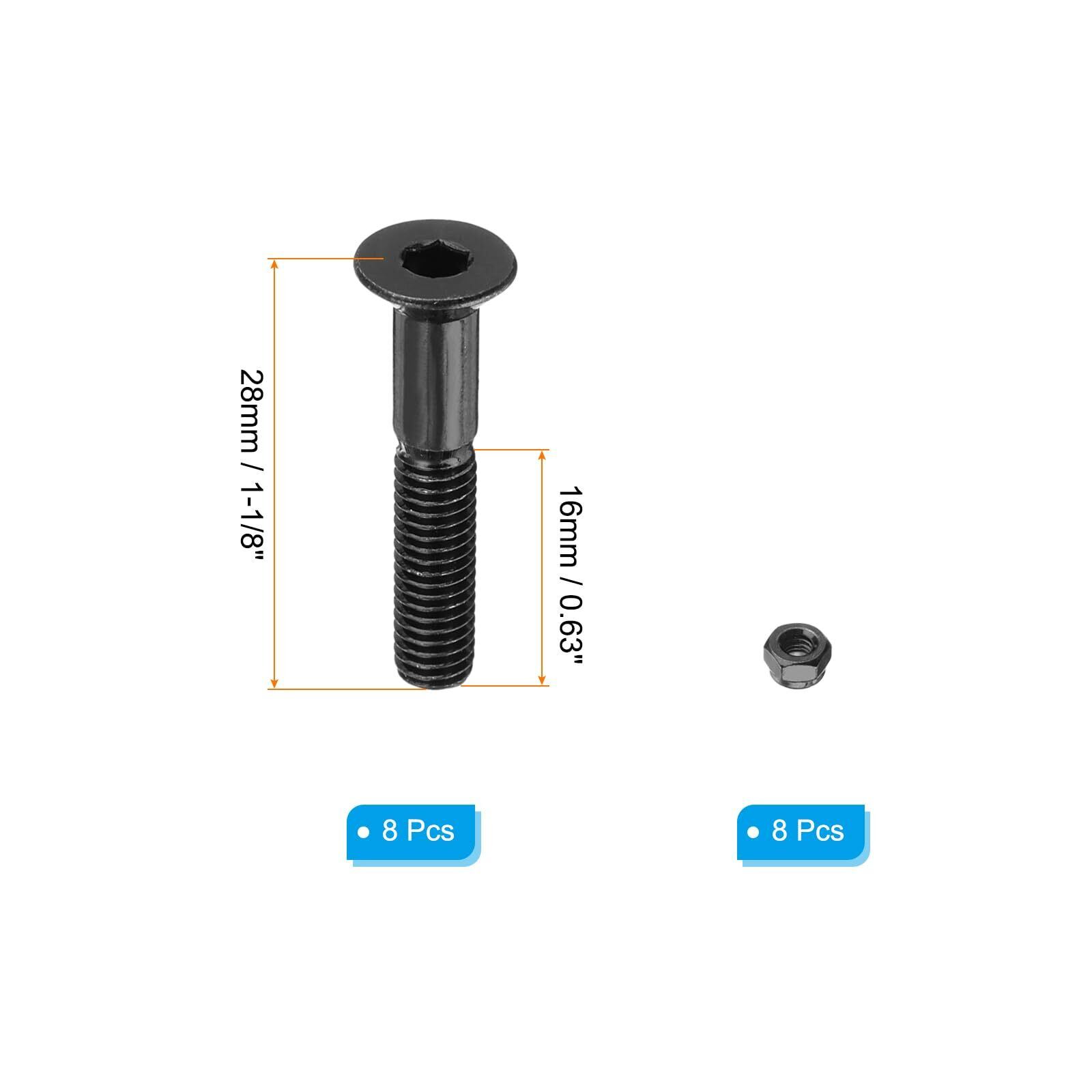 PATIKIL スケートボード用ハードウェアキット 1-1/8インチ 8個 カーボン鋼製グレード8.8 取り付け用ネジ ボルト ナット セット スケートボード クルーザー用 黒