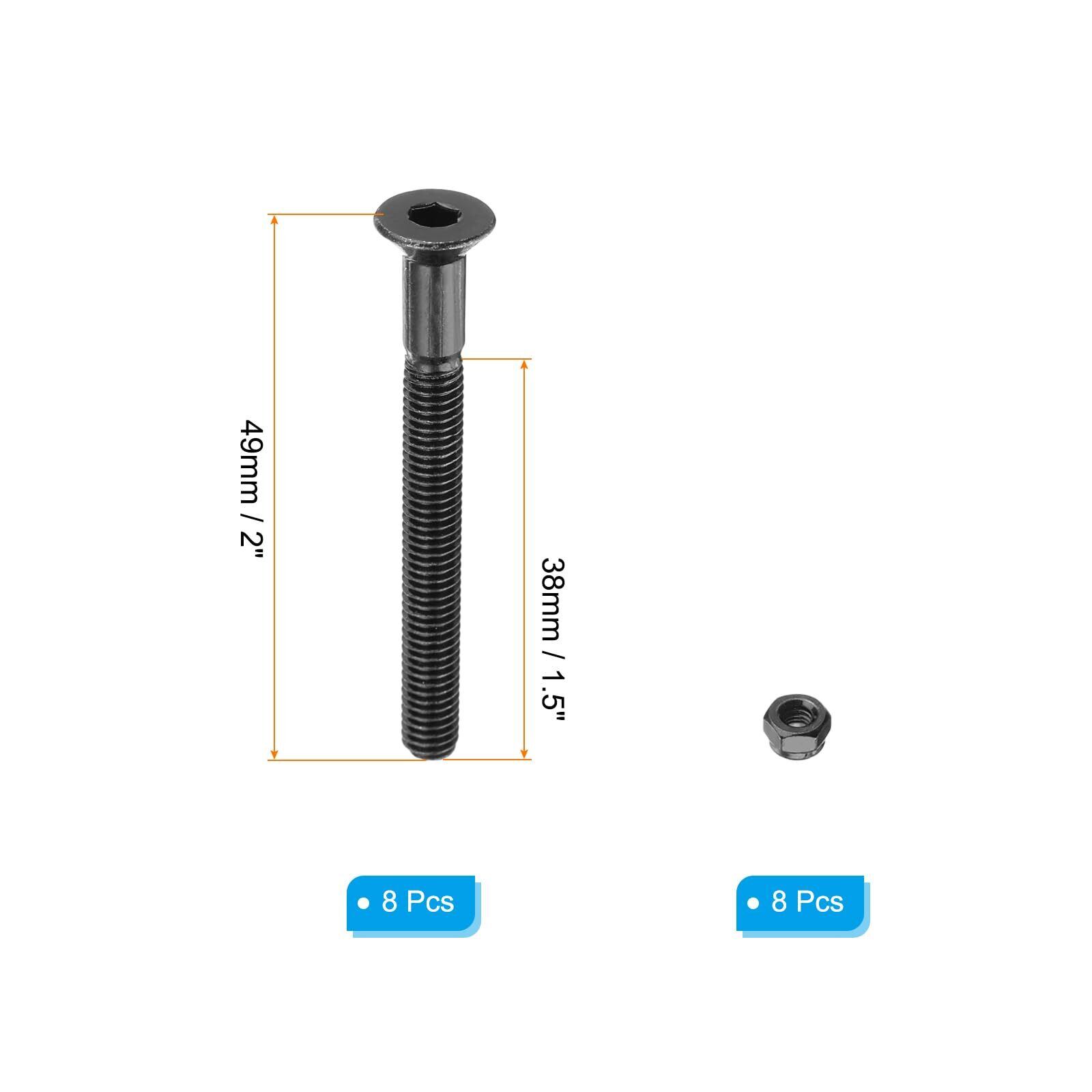PATIKIL スケートボード用ハードウェアキット 2インチ 8個 カーボン鋼製グレード8.8 マウントボルトナットセット スケートボードクルーザー用 黒