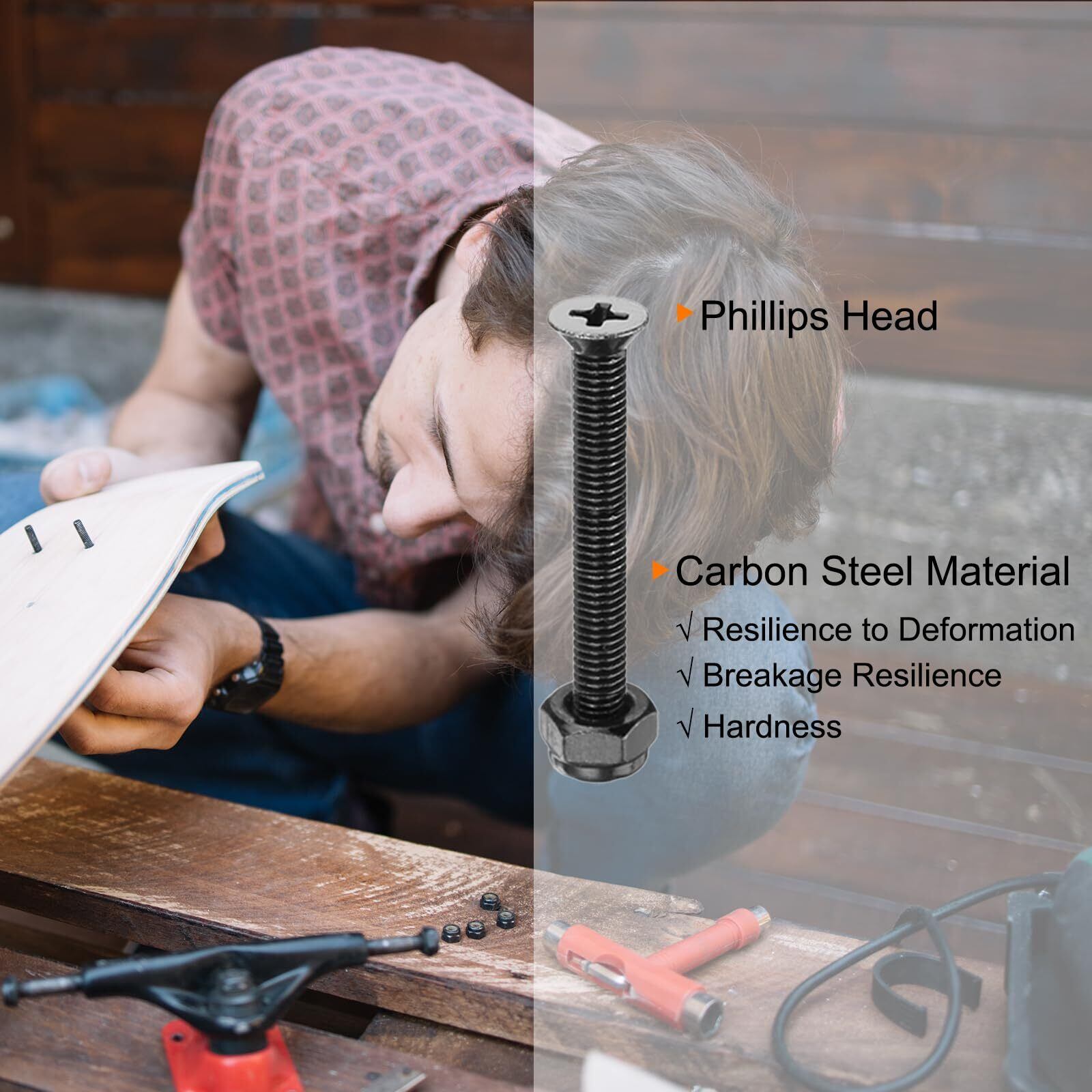 パッケージリスト: スケートボードネジ8本、ナット8個