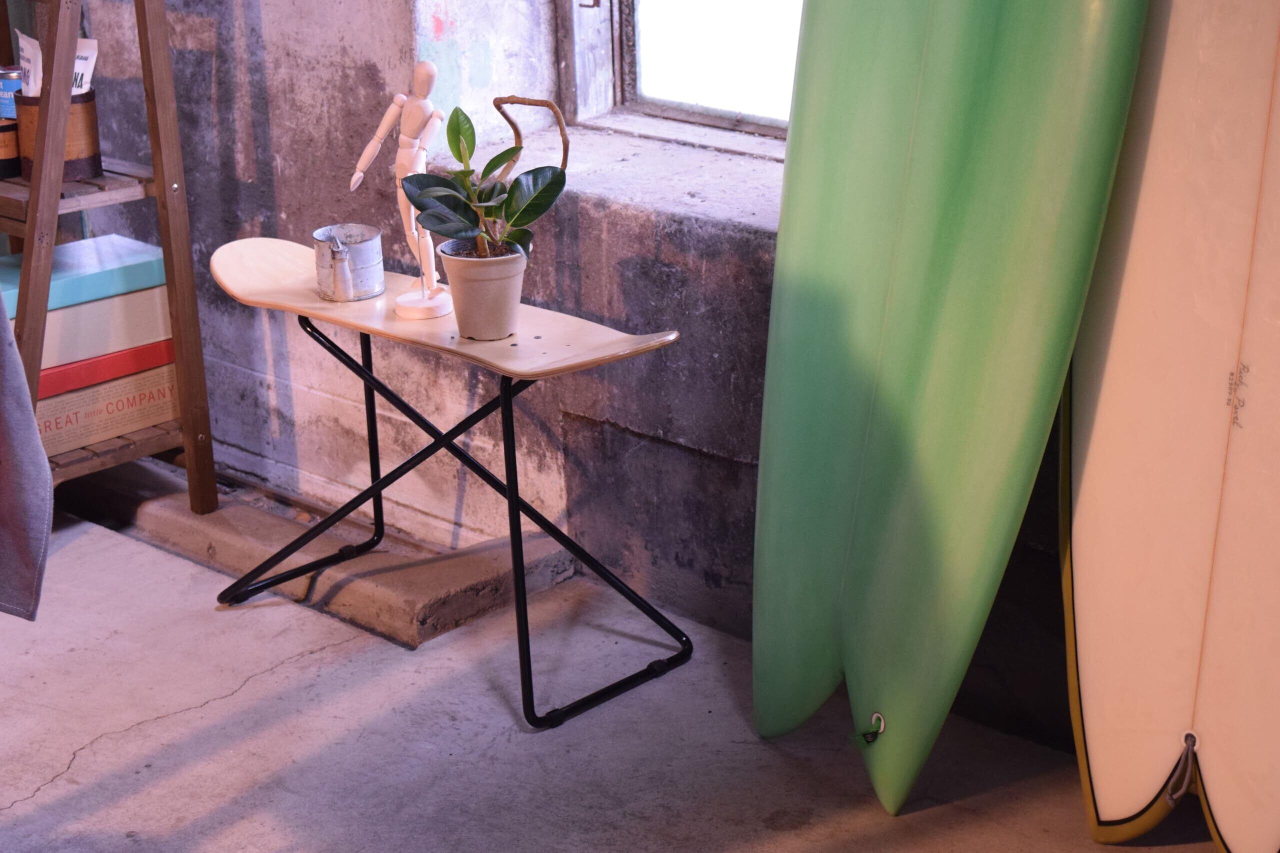 スケートボードを天板としたガーデンテーブルです。プランターボードに利用してもお洒落。