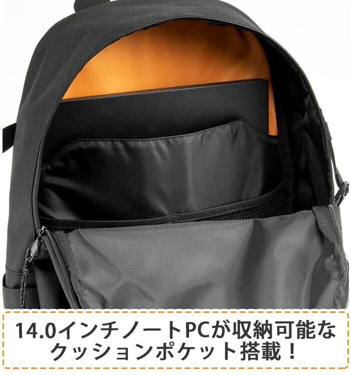 【その他機能】①ズレ落ちを防ぐチェストベルト ②暗がりでわずかな光にも反射するリフレクター素材入りのファスナートップ ③チャームやポーチを取り付けられるショルダーハーネスフック ④ショルダー部分や背面に蒸れを低減するエアメッシュ素材を採用