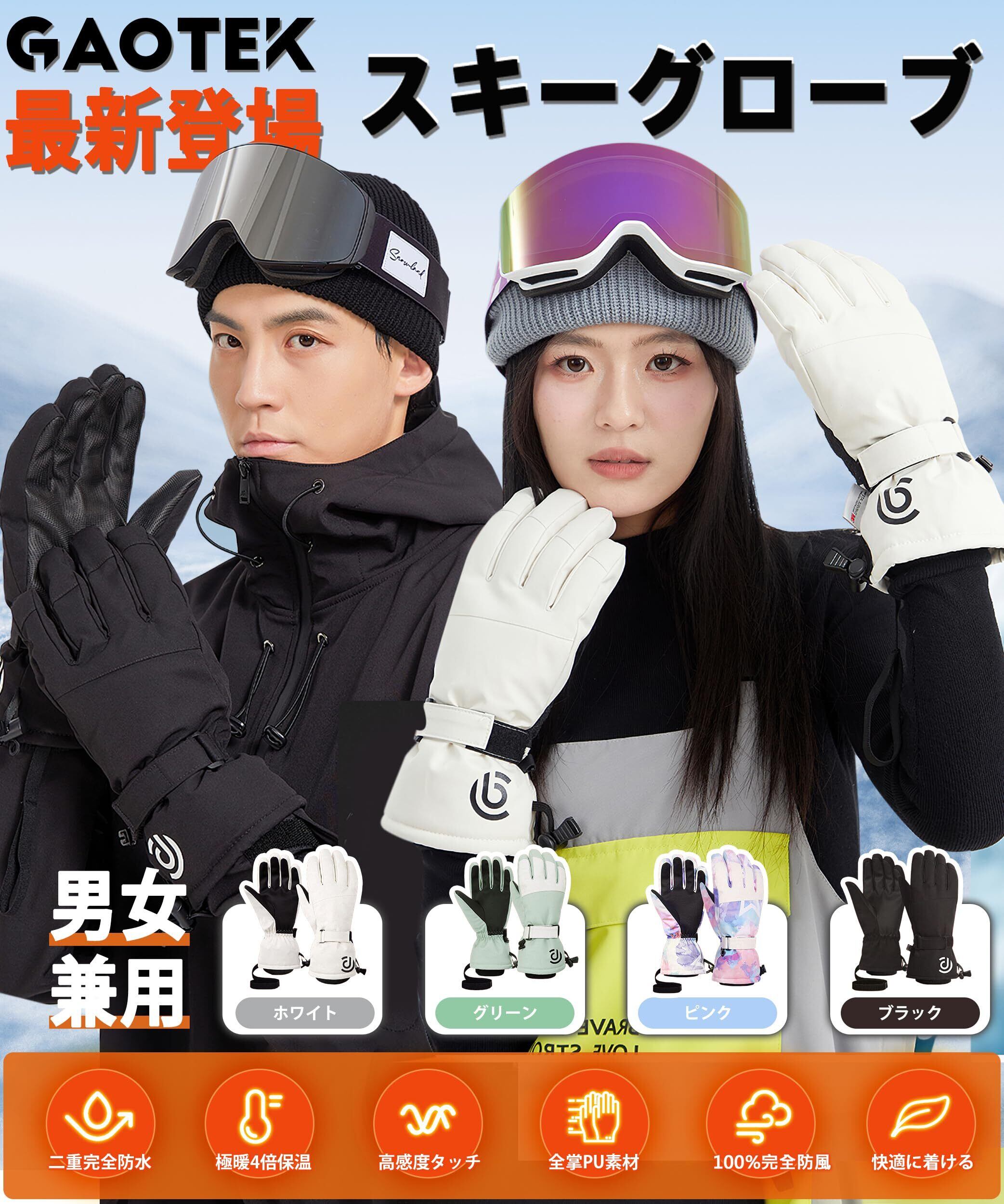[GAOTEK] 「新登場」 スキーグローブ 防寒手袋 【極暖4倍保温・二重防水加工・スマホ対応】 アウトドアグローブ 防水手袋 メンズ 調整ベルト付き 紛失防止結び付け スキー 自転車 バイク 登山 釣り アウトドア 作業用 男女兼用