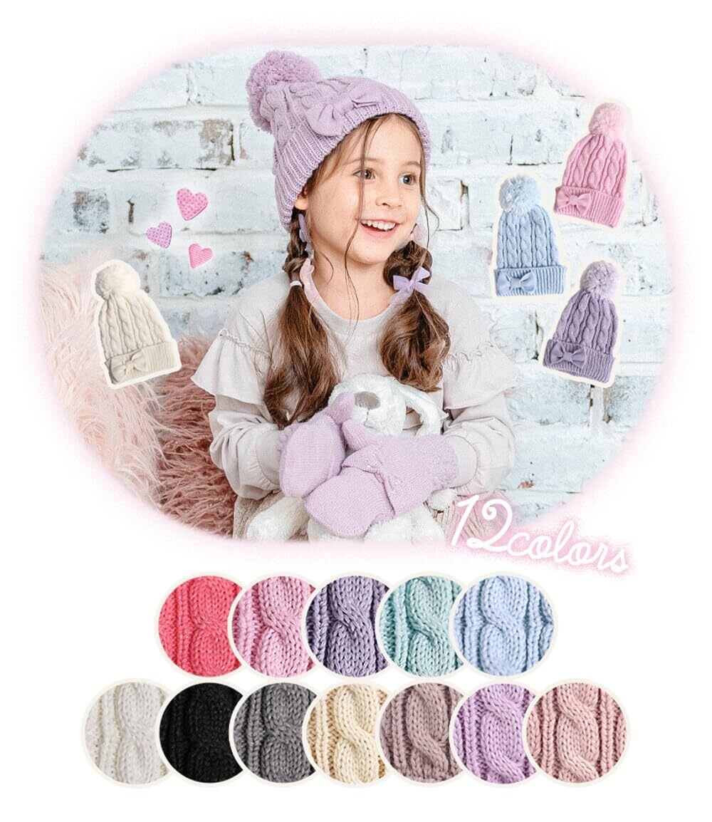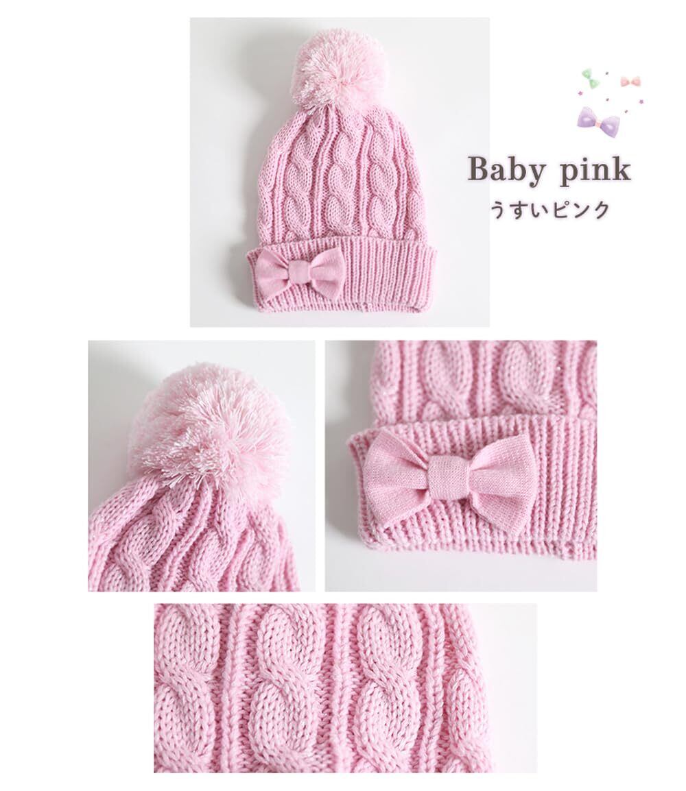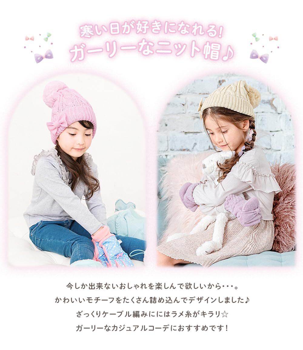 [アリサナ] ニット帽 キッズ ケーブルニット 子供用 女の子 リボン 防寒