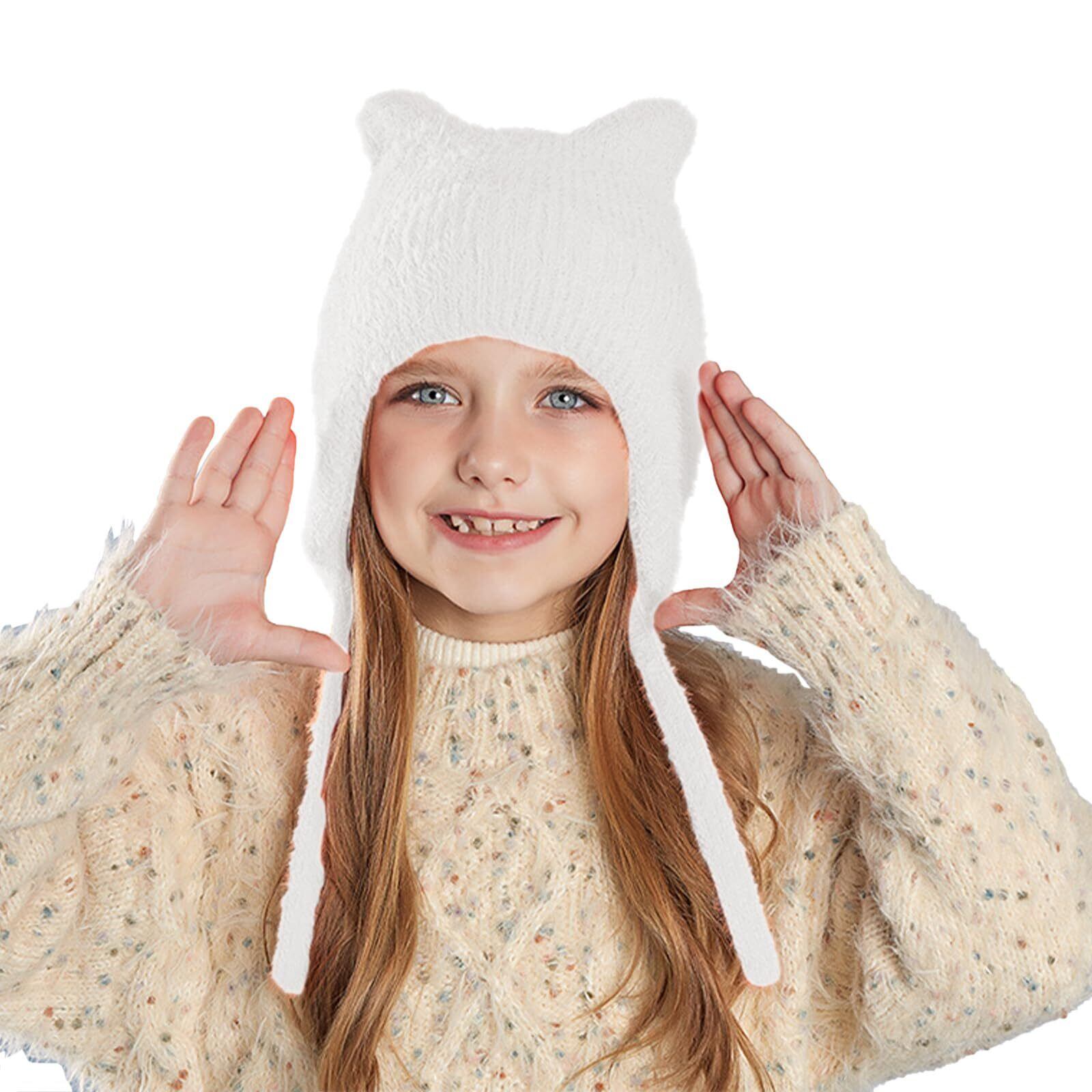 [LEZOOY] ニット帽 子供 秋冬 耳当て付き 4~10歳 ビーニーキャップ 防風防寒 保温 かわいい猫耳 裏起毛 柔らか 伸縮性 登山 自転車 スキー 小学生 男女兼用 頭囲50-54 CMに適用