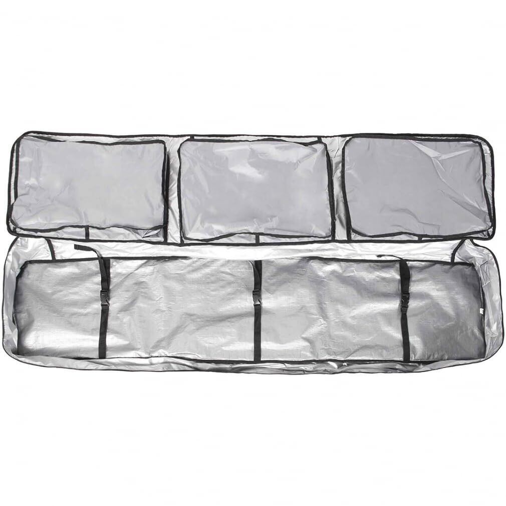 ボード、ブーツ、ウェア、アクセサリーなどの収納に。3つの独立ポケットで荷物を分けて汚さず収納できるオールインワンスノーボードケース。全面クッションパッドで移動時の衝撃を緩和。
