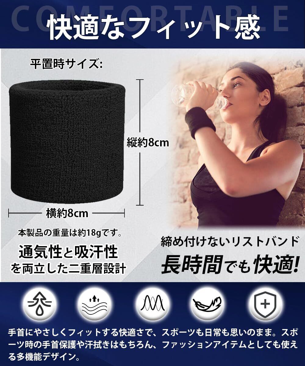 【商品説明】コットン製の無地リストバンド4個セット、シンプルで使い勝手の良いデザインです。平置き時サイズ約8cm×8cm 、適度な厚みで、子供から大人まで、男女兼用でご利用いただけます。