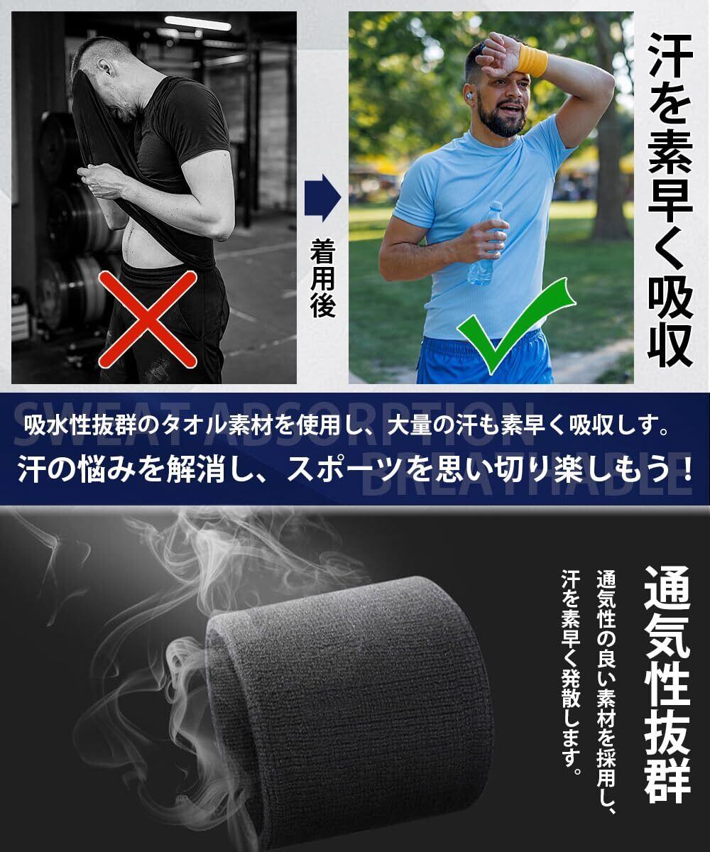 リストバンド 4個セット 8×8cm 汗拭き 汗対策 スポーツ・洗顔用 吸水 通気 伸縮 肌触り良し 手首サポーター 手首保護 テニス バドミントン ランニング 男女兼用 子供から大人まで使える