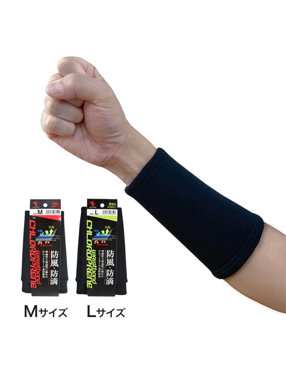 福徳産業 リストバンド L 2枚入 ウェットスーツ素材 袖口から雨の侵入を防ぐ 防風 防滴 伸縮性 保湿性 腕カバー アームカバー #9664-L