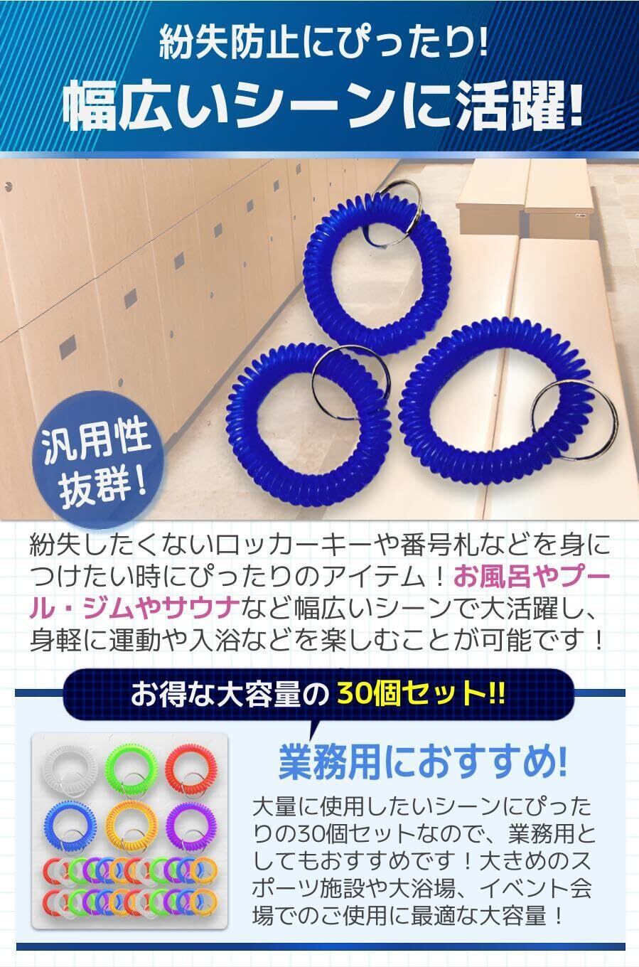 【幅広いシーンに活躍!】紛失したくないロッカーキーや番号札などを身につけたい時にぴったりのアイテム!お風呂やプール・ジムやサウナなど幅広いシーンで大活躍し、身軽に運動や入浴などを楽しむことが可能です!