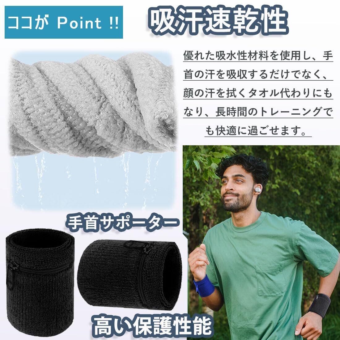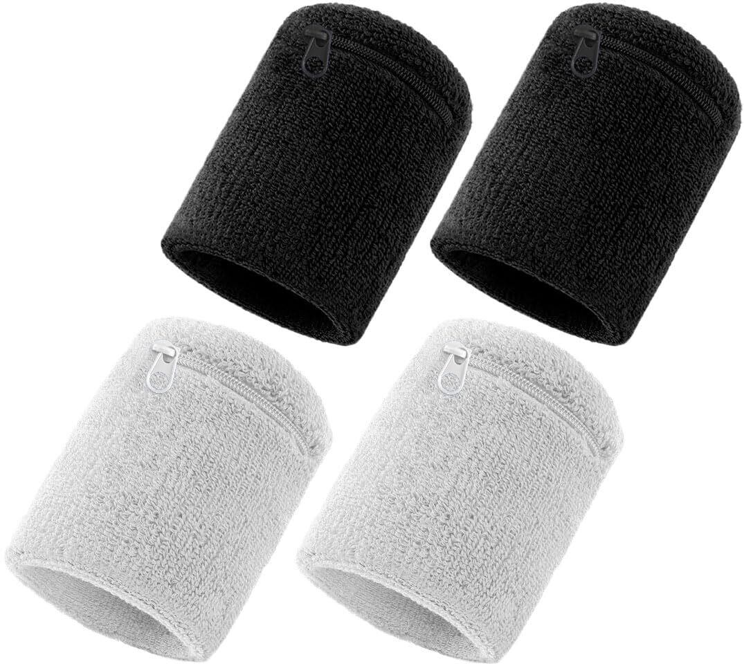 リストバンド 4個セット【ファスナー付き・ポケット付き】手首サポーター スポーツバンド チャック 汗拭き 保護 伸縮性あり タオル生地 小銭 鍵 小物 収納機能付き 紛失防止 ランニング サイクリング サッカー 野球 大人 子供 男女兼用