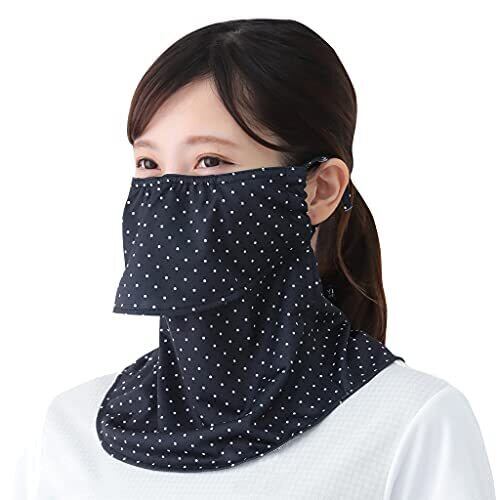 YAKeNU UV CUT MASK UVカットフェイスカバー ドットヤケーヌ 息苦しくないフェイスカバー (面ファスナー, 595 ピンドットブラック)