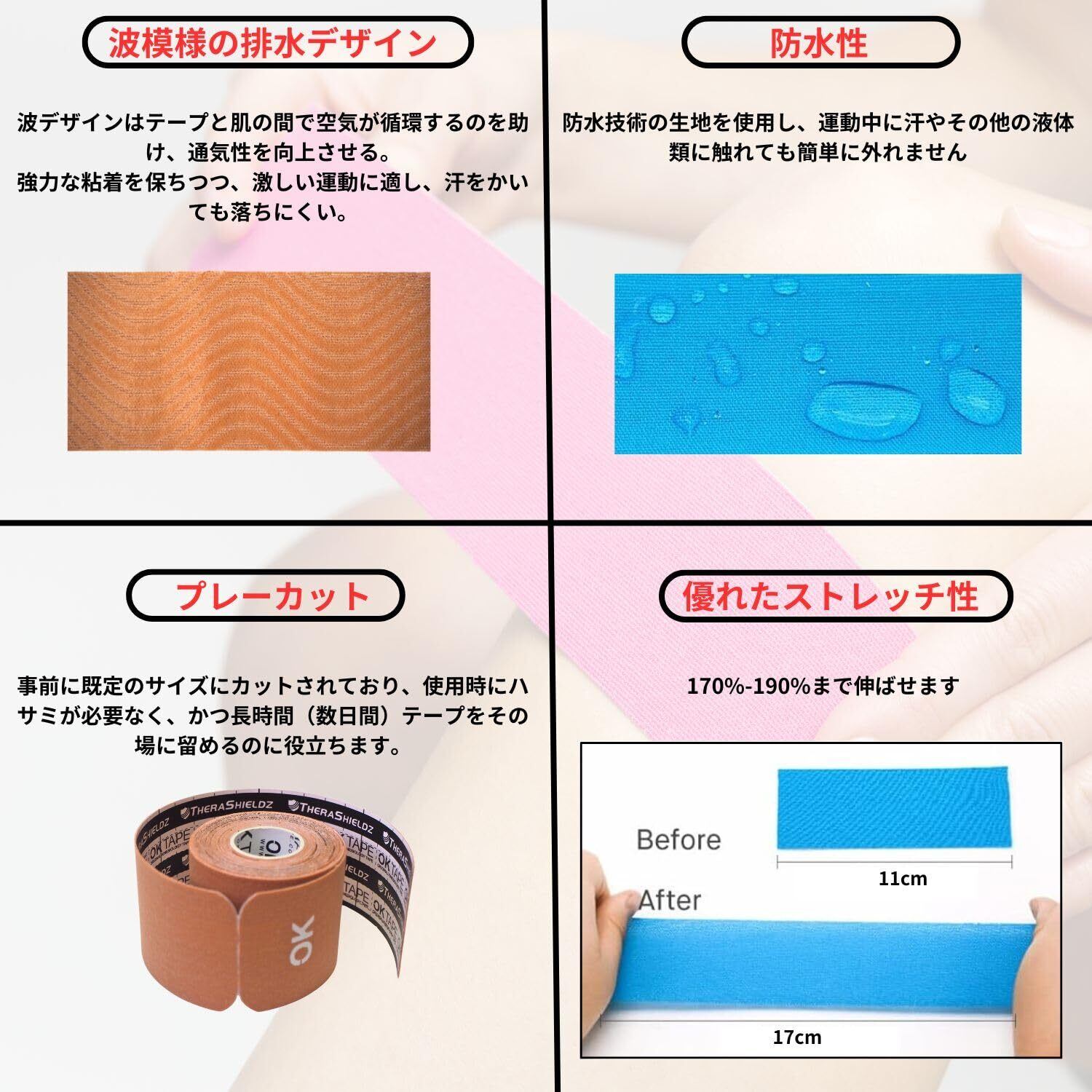 【OKTAPEを選ぶ理由】:OKTAPEは15年以上にわたりスポーツテープの製造に専念し、多くの国で愛用されています。当社の全製品は自社工場で生産されており、厳格な品質管理のもとで製造されています。デザインから生産、検品までを一貫して行うことで、高品質な製品を提供しています。